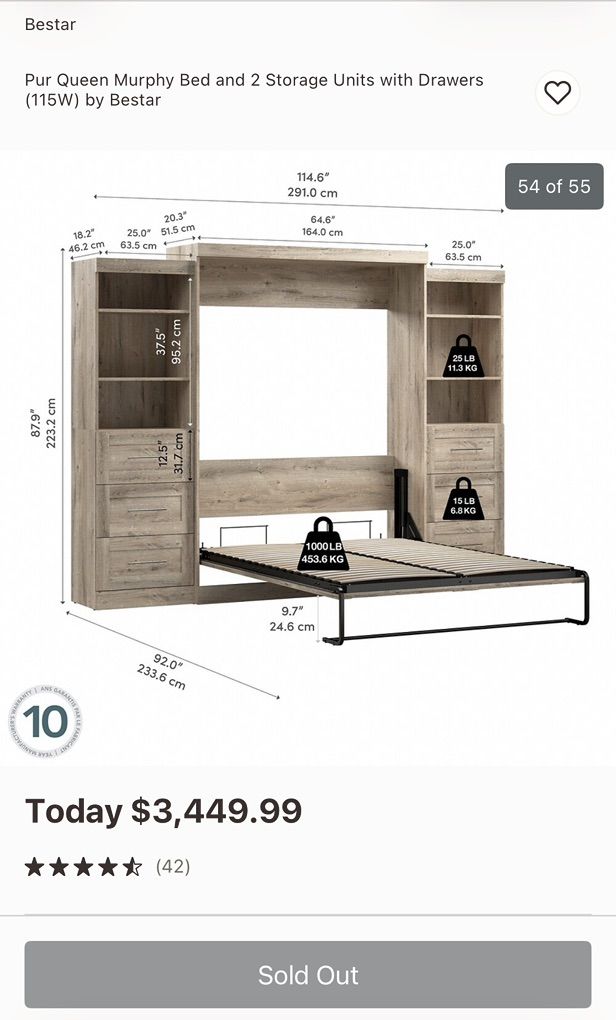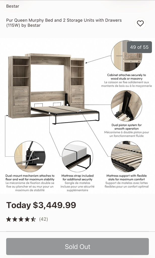 ApplePayBrand new Bestar Pur Queen Murphy Bed, still in box. Includes 2 shelving units with drawers. Perfect space-saving solution for guest room or home office.
