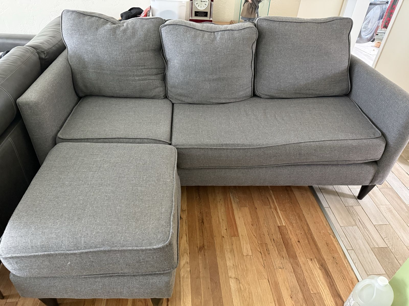 VenmoLength 81 inches long Depth 35 inches Foot ottoman 25X25 inches Gray Great condition No stains No smoking $450 OBO