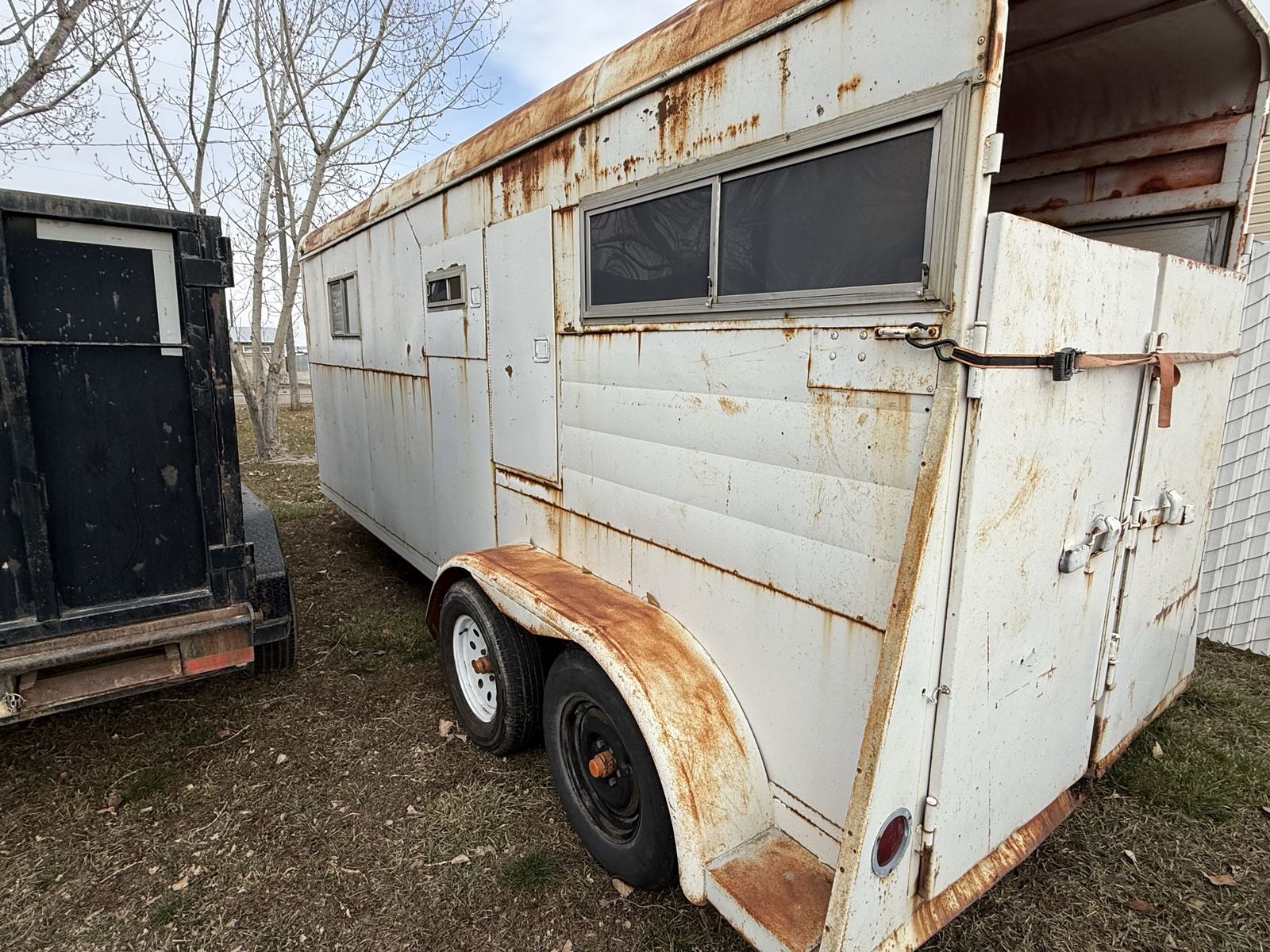 2 horse trailer with tack room 20 feet long Axles towards the back so it pulls straight and smooth Older trailer but works great. New floor and new tack room door. Will post updated pics once I install floor and new door.