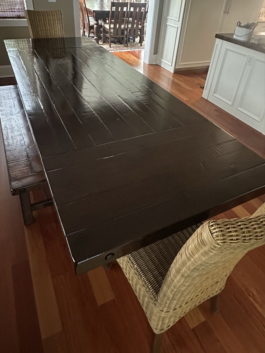 VenmoThe table is in great condition. Includes two wood benches and two rattan high back chairs. Measures 7’-2” without extensions. If you add both extensions, 18” each, it can extend to 10’-2”. Width of table is 3’-6” or 42”. $500 or best offer.