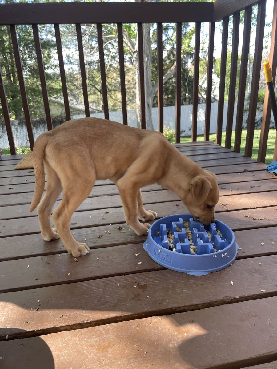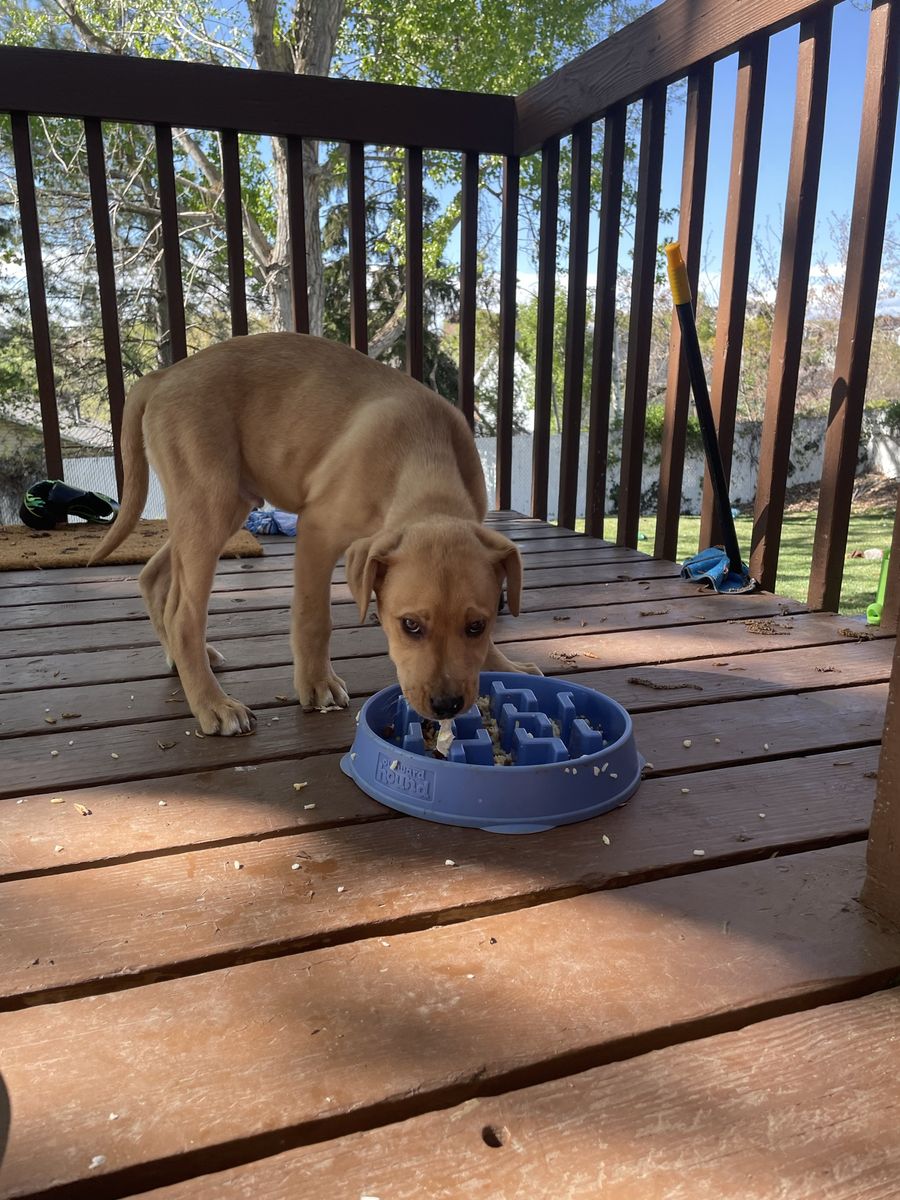 Blaze is a big eater who doesn’t prefer to share food, so if you have other dogs, he can be a bit possessive. The cane corso in him also makes him possessive of his owners, so he will make a great protector, but it may be a challenge as he gets bigger if you have multiple pets and they don’t bond well. We have two bossy heeler pups about his same age who he bonded very well with and loves to play and snuggle with, but he’s dominant by nature and doesn’t tolerate when they pester him. He would do best with siblings who can safely rough play or cuddle with him but still respects his space.