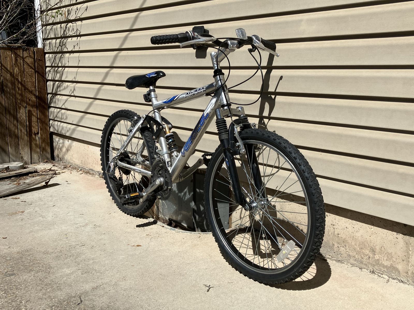 PayPalSelling a Vertical XG9000 mountain bike. Shimano Tourney 3x7 drivetrain. Full suspension. Linear brakes. Frame is 44cm aluminum. Recently tuned, no flats, ready to ride. Proceeds benefit local charity.