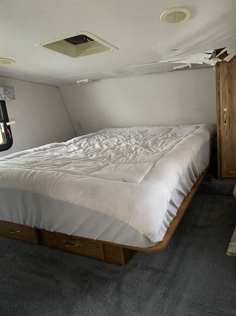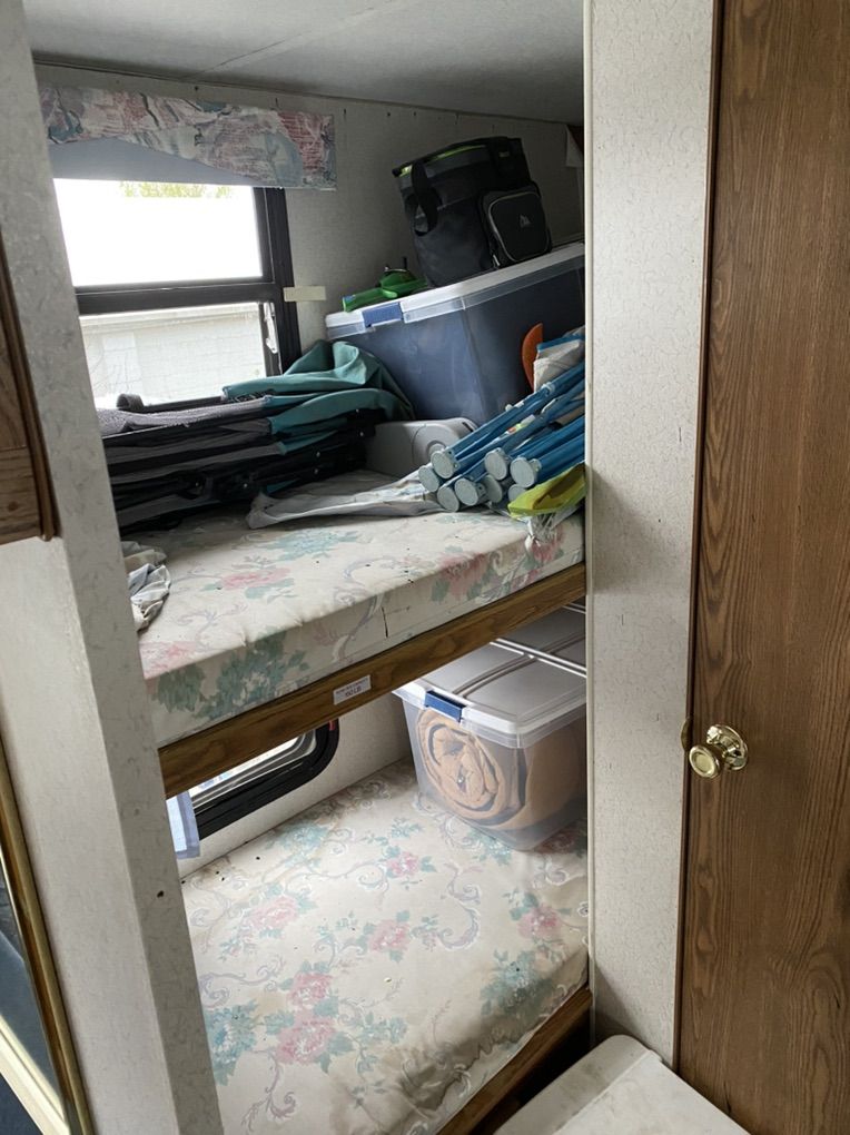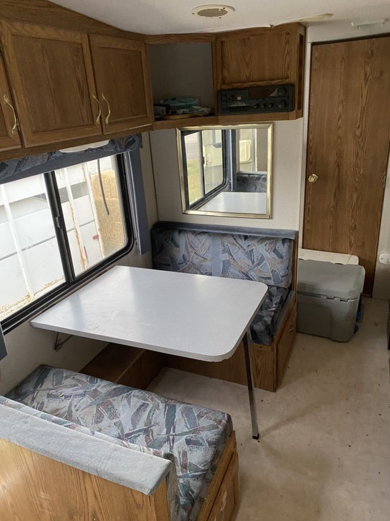 1994 Terry 25 foot 5th wheel camp trailer. Has gooseneck adapter from 5th wheel. Has bed up in the nose couch that folds into a bed table turns into a bed and a set of bunk beds. Has outdoor shower. Furnace stove/oven and water heater all work haven’t tried fridge or air conditioner. Been a good trailer for us just time for something different. Does have some water damage in the front but leak has been fixed.