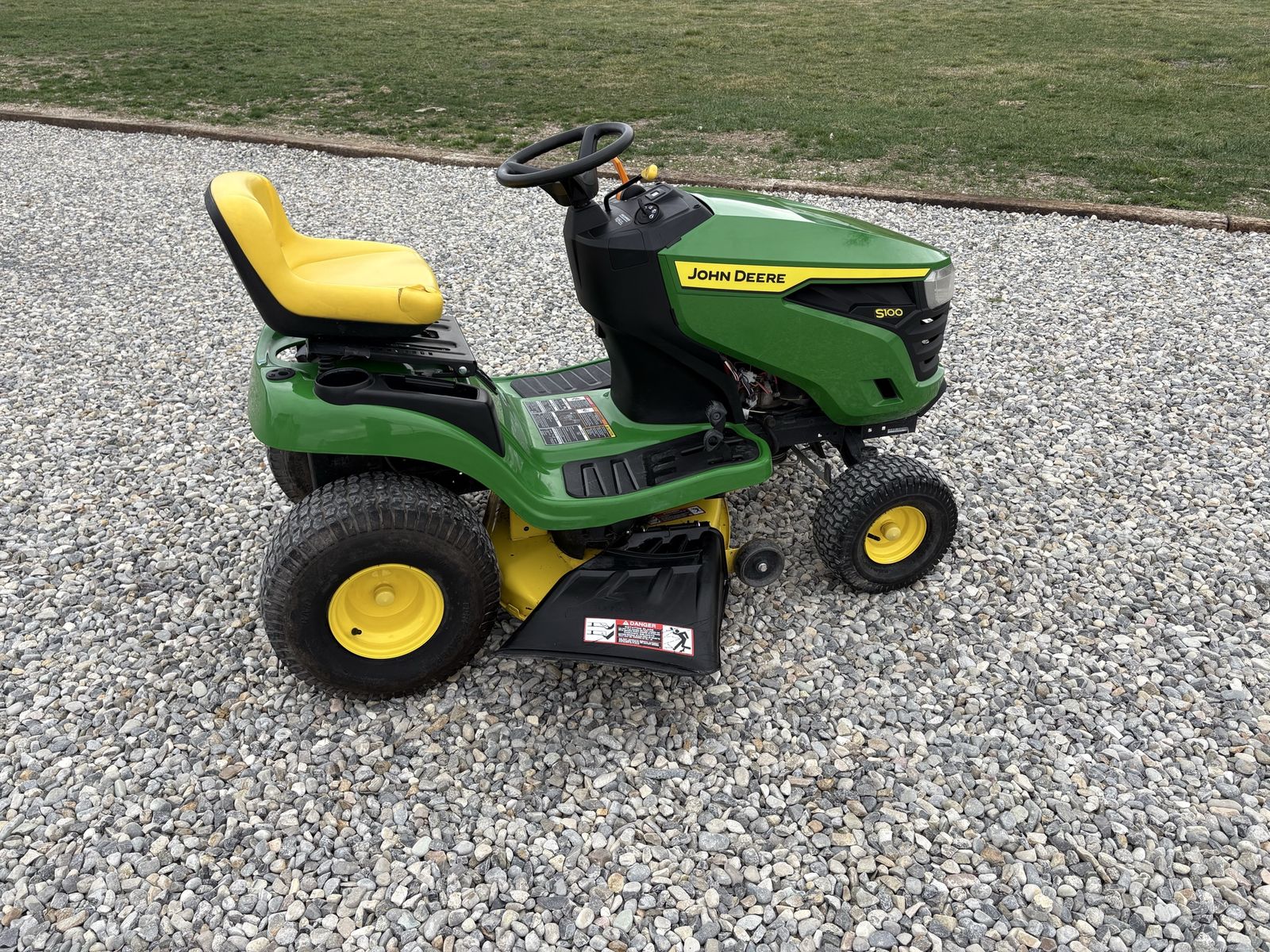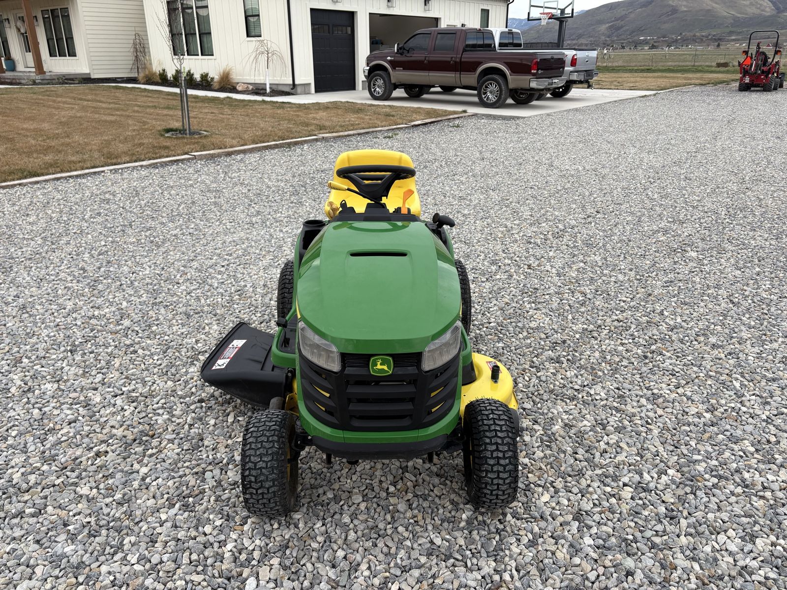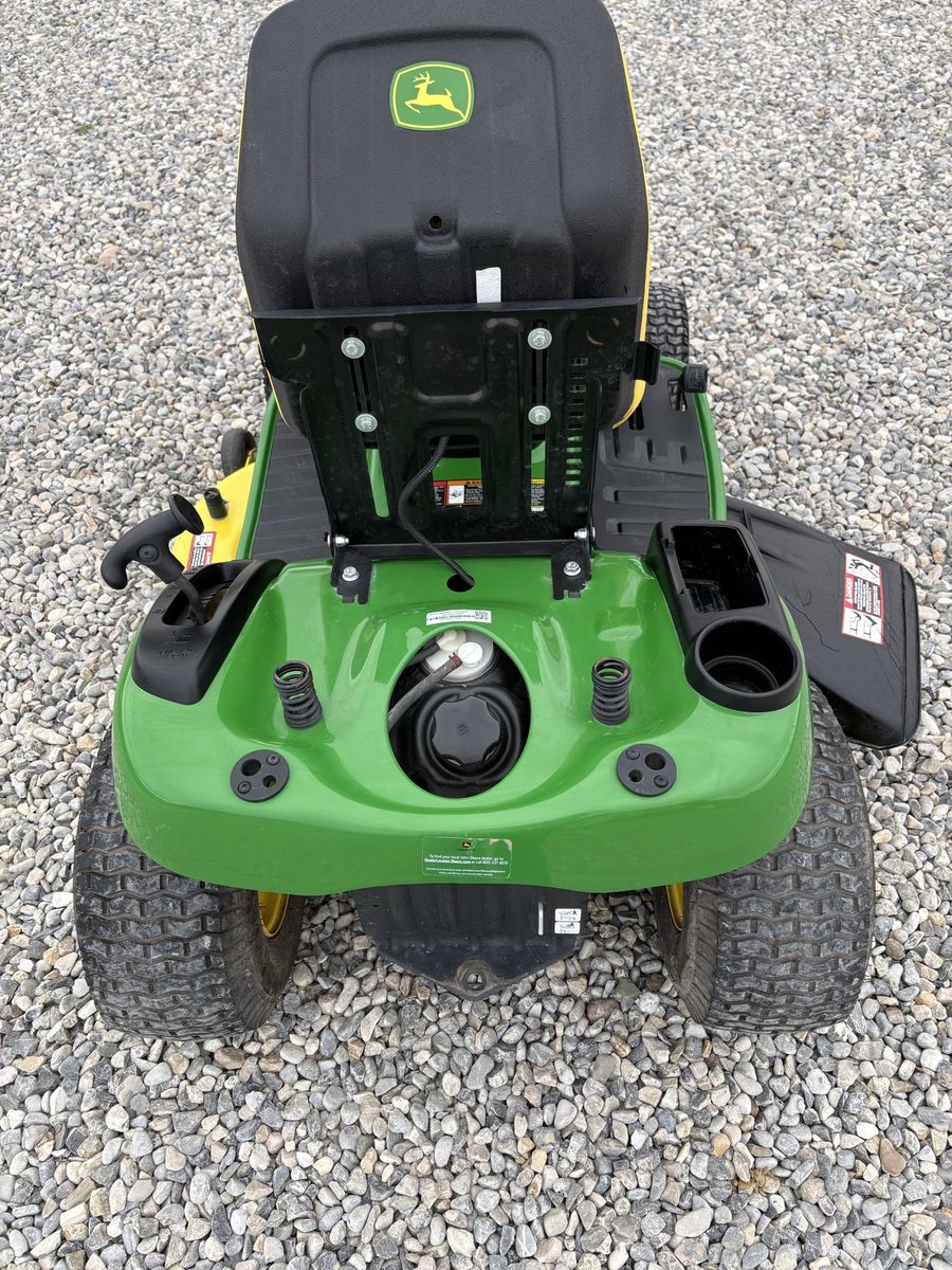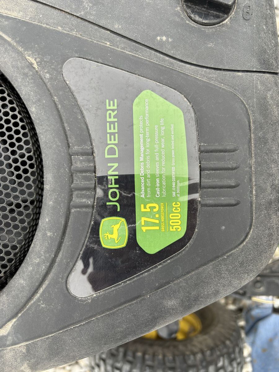 This is my John deer riding mower, runs like a top and all maintenance has been done with new blades it has 112 hours on it and it has a tear in the seat from a weed trimmer falling on it. I need a zero turn for my yard so it’s time to… See More