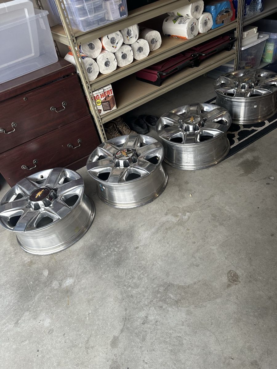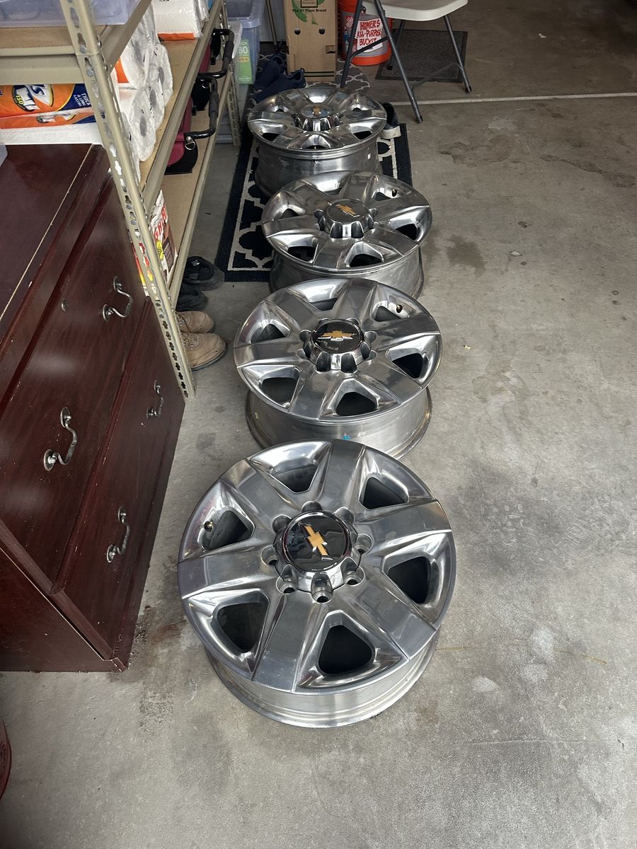 These are stock 20x8 rims off a Chevrolet Silverado 1 ton 8 lug rims These are in perfect shape.