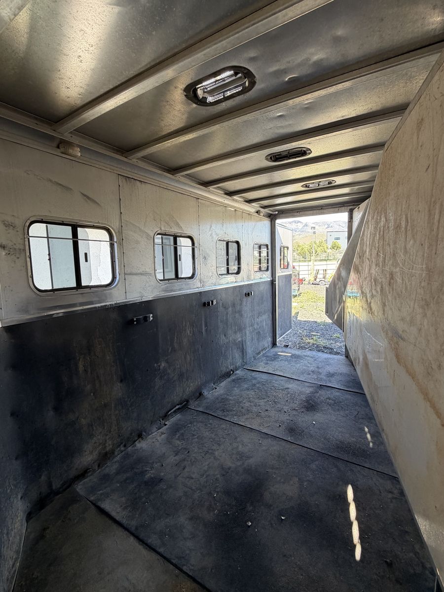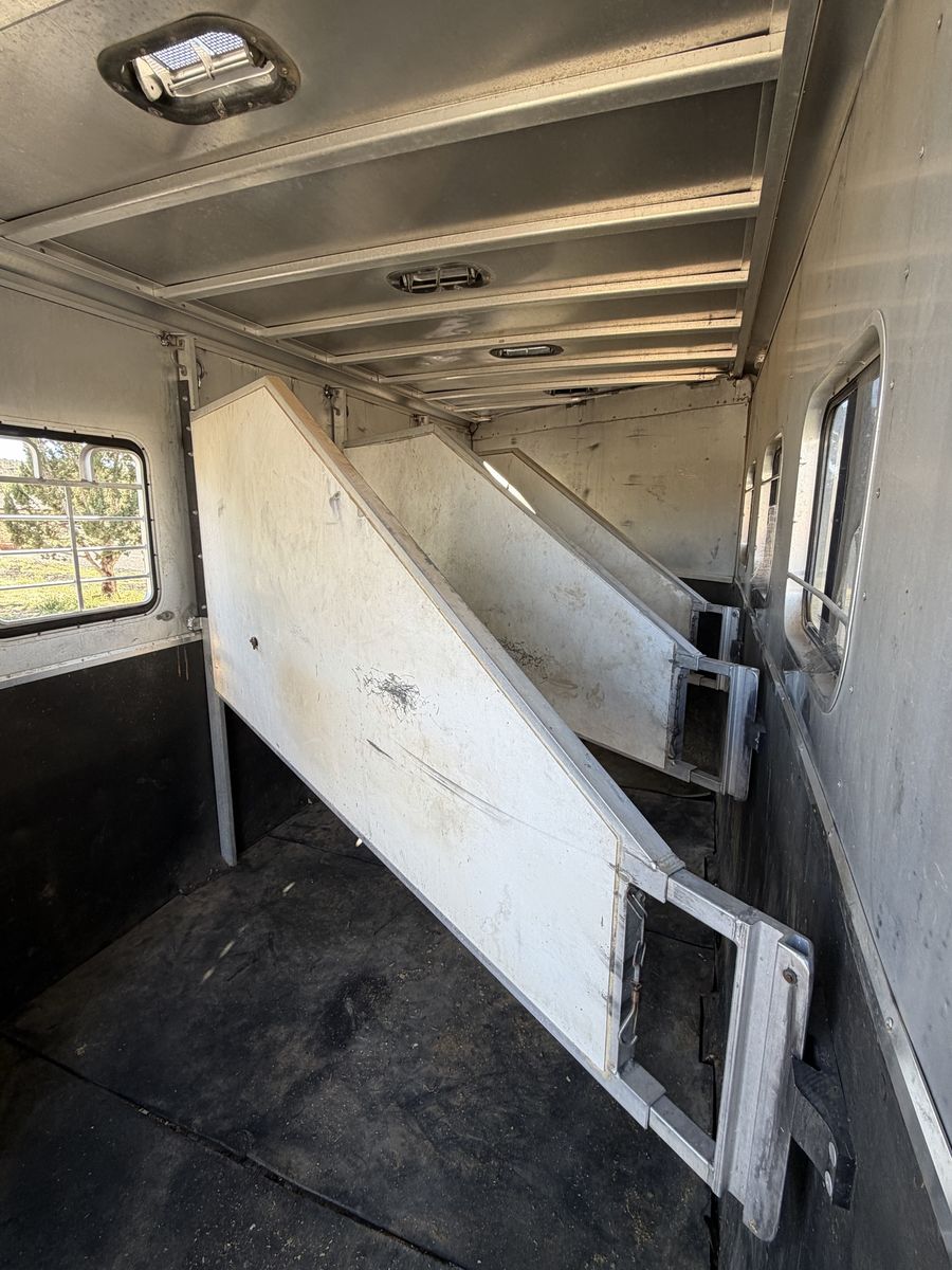 Key Features: •4-horse slant load configuration •Durable aluminum construction (lightweight and rust-resistant) •Remodeled weekender interior. •Rear tack area •Rubber mats •Solid floor and frame Bearings have been repacked & trailer breaks work great.