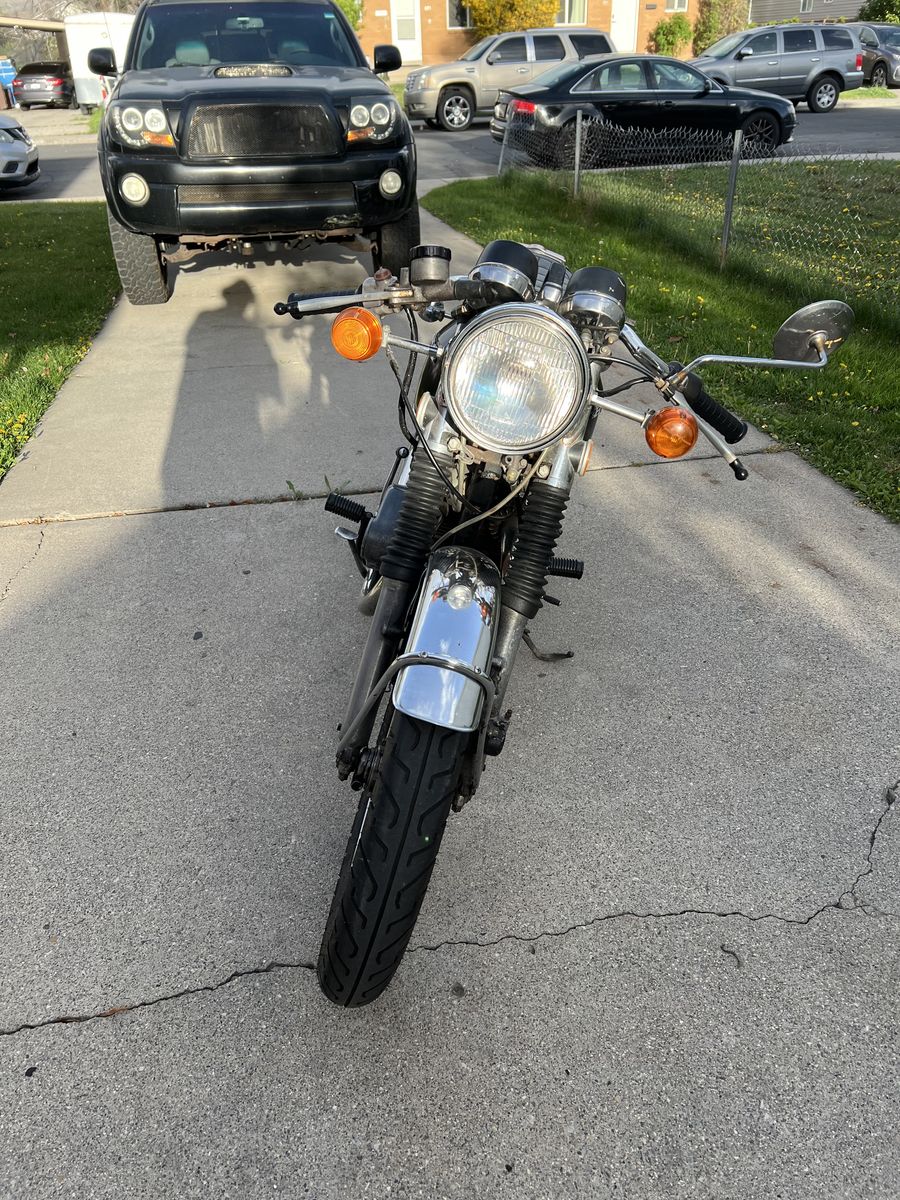good bike, runs great. New battery, fresh oil and filter, brake pads have tons of life, tires in good shape, new front tire tube. All lights work good. Color is a little more blue in person. There is some gas stain on the tank. I'm happy to answer any questions, I've had this bike for 6 years, always garaged, experienced bike owner. I was going to do a full cafe job on this bike with straight scrambler pipes but I have too many bikes/projects right now,