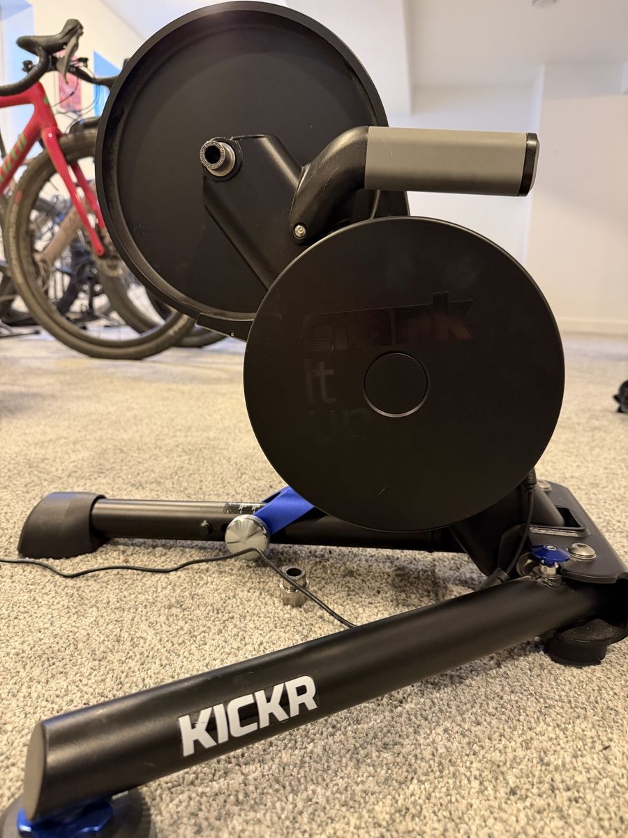 Used Wahoo Kickr V6 in great shape! Has lived in my basement, and was used with a waxed chain. Kickr has 6,500 miles on it, lots of years to go. Does not include Zwift Cog, but I have a few cassette options.