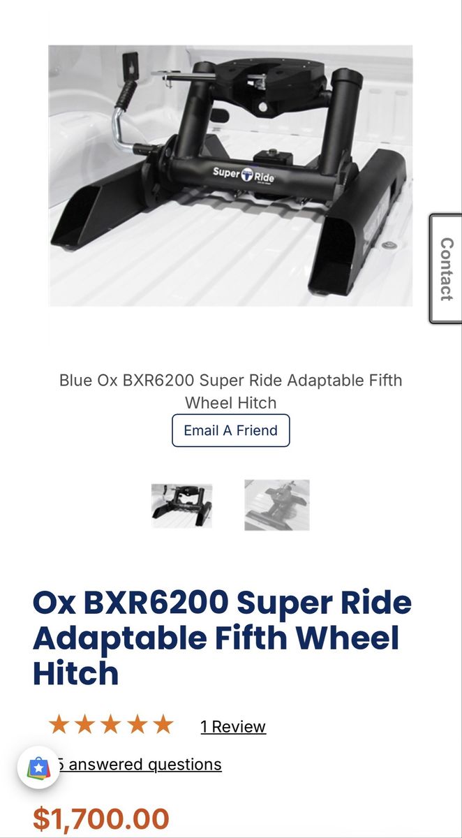 This is my blue ox 20 K fifth wheel hitch, tows, great and is easy to use, but I sold my fifth wheel and no longer have a use for it 1700 new but will let it go for 450obo, thanks
