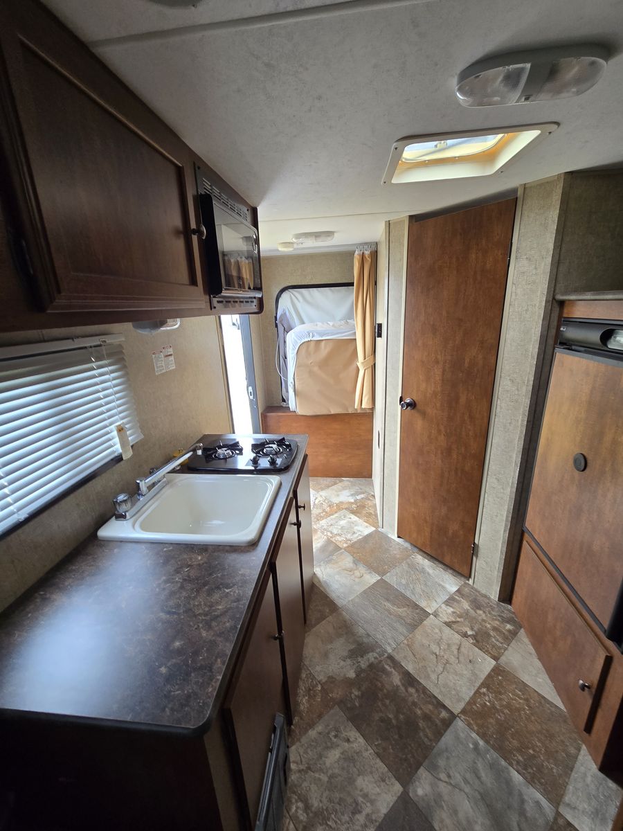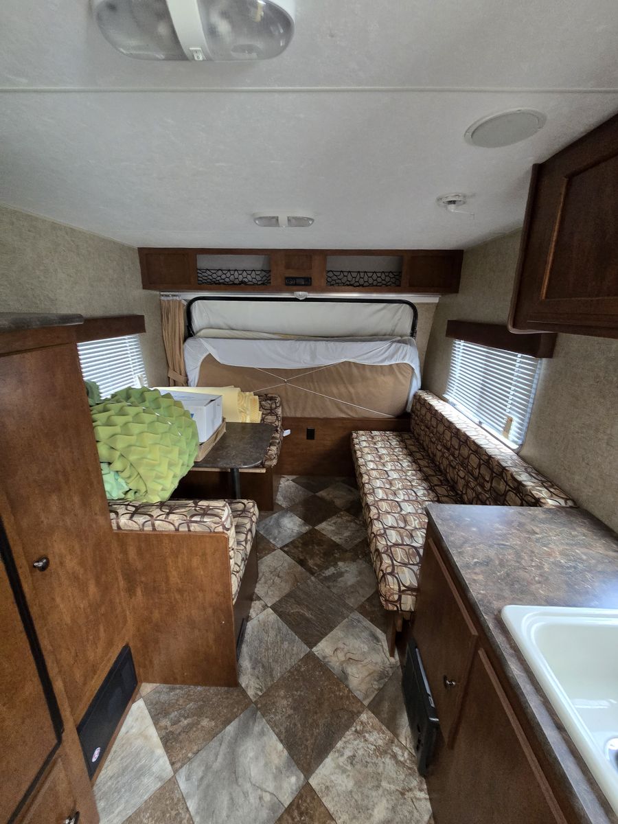 VenmoSeldom used 18 ft trailer. Sleeps 8. Air conditioner, microwave, stovetop, heater, shower and hot water heater have NEVER been used! Wheelbearings recently greased and packed. Excellent condition!