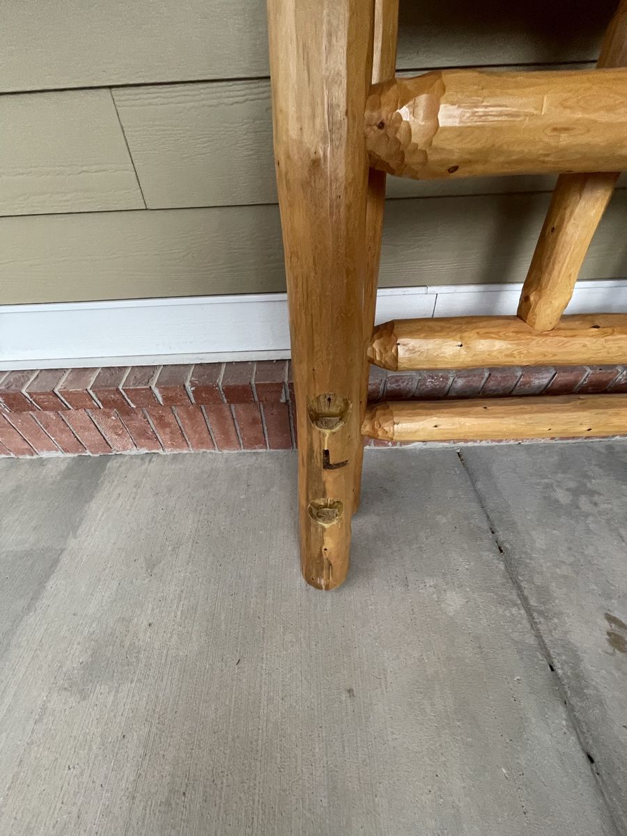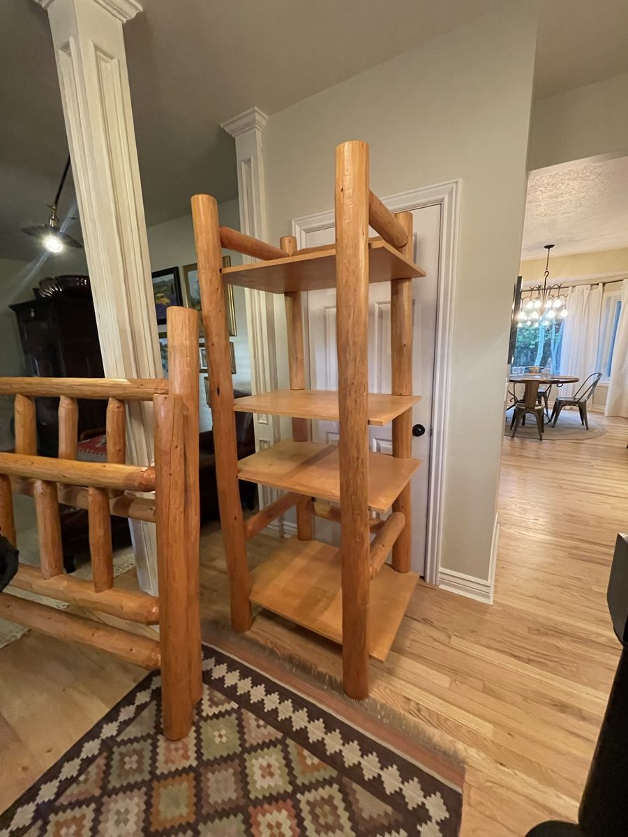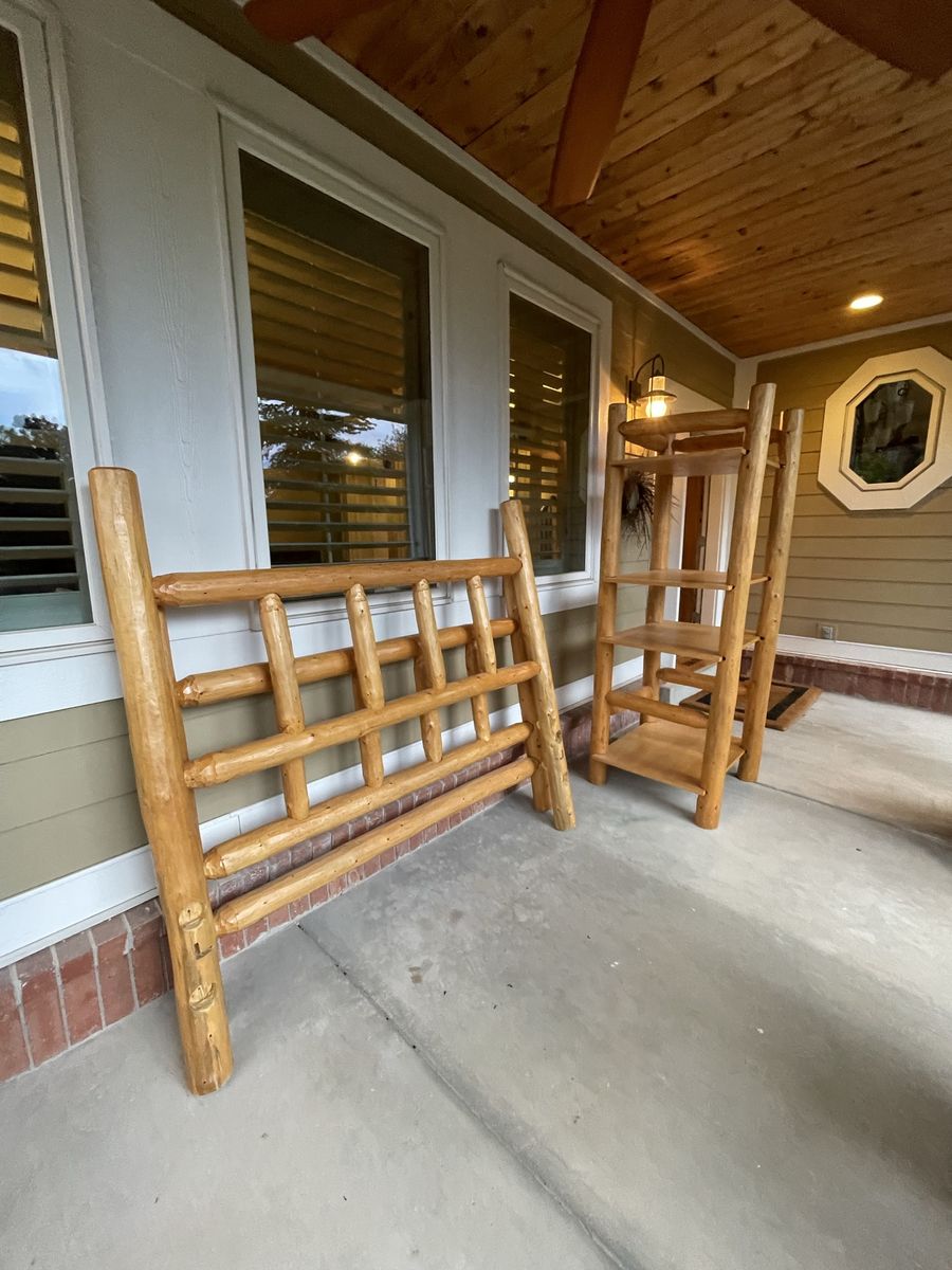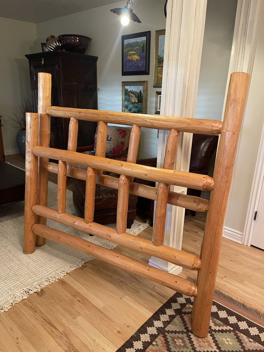 VenmoPine Queen size head board and foot board along with the entertainment stand. We hand scraped the logs and made this bed. We have the 2 side rail logs for both sides and a metal mattress base. Great bed for a rustic look!!