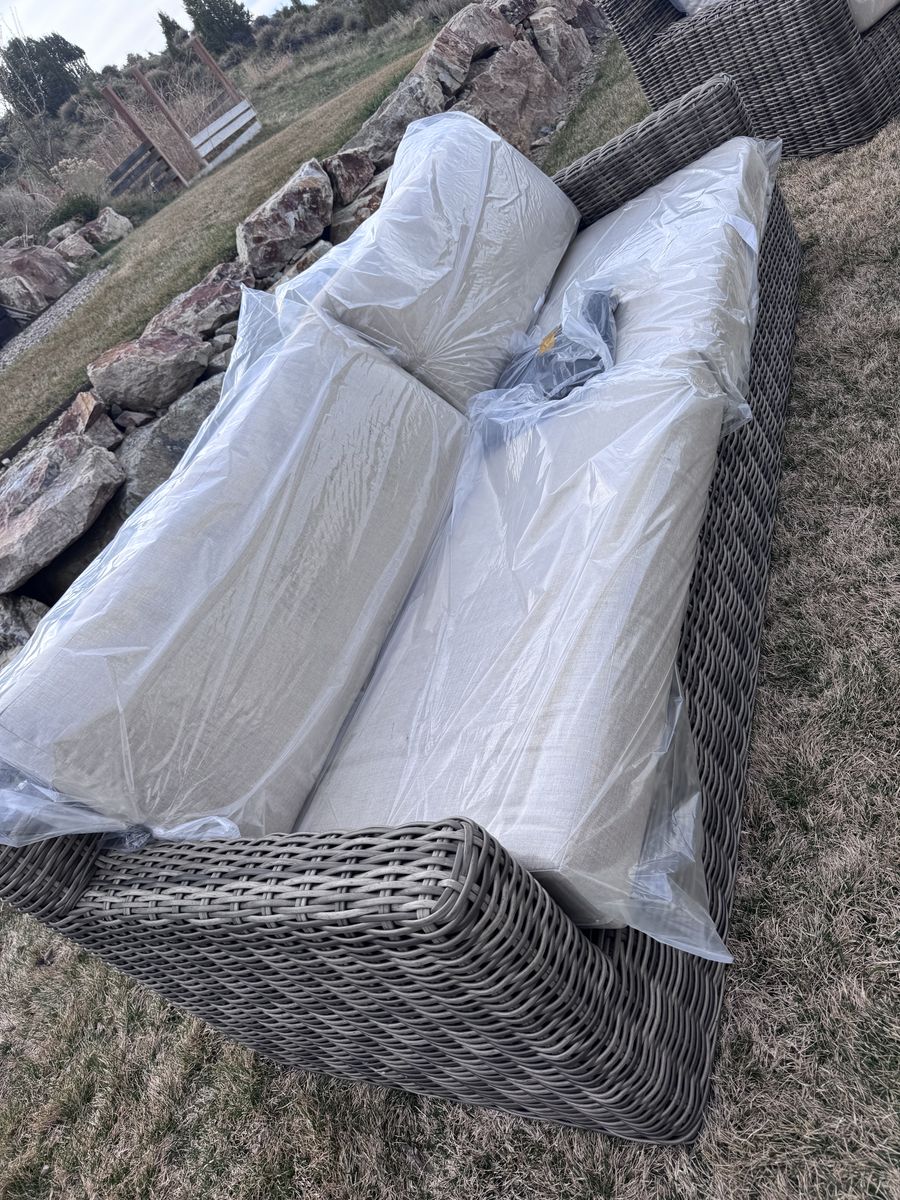 VenmoBrand new and the most comfy and durable, heavy duty patio set... And SO CUTE!! Set includes an oversized table, 2 chairs, sofa, and Weather-Resistant Covers. Will meet up anywhere between Pocatello and Tremonton... Or home delivery for fee. You can message me and we'll wish something out.