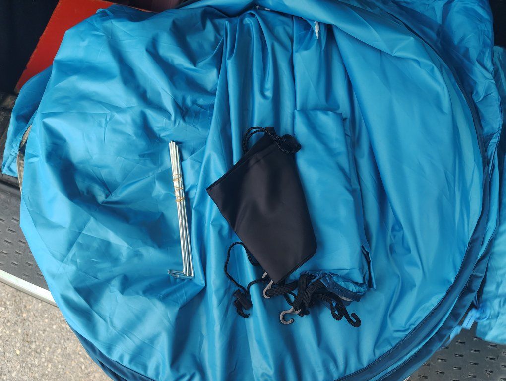 Up for sale an awesome COMMOUDS Portable Pop Up Privacy Tent. suitable for use as a shower, changing room, or toilet shelter while camping or at the beach. Design: Instant pop-up design for quick setup without poles. Features: Includes top mesh for ventilation and zipper entry. Material: Weather-resistant polyester fabric with a flexible steel frame. Dimensions: Approximately 6.9 feet tall..