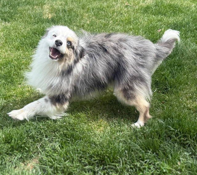 Chico current weight 42 pounds, tanks weight is 21 and indy is 40Bugs Bunny is a stunning merle Mini Aussie with a soft heart and a love for cuddles This sweet boy thrives on affection and would happily spend his days snuggled up with his favorite person. While he can be a little shy at first—especially around men—Bugs just needs a patient home that will give him the time and space to feel safe and build trust. He does best with female dogs and would love a calm, understanding environment where he can continue to grow in confidence and show off his loving personality.