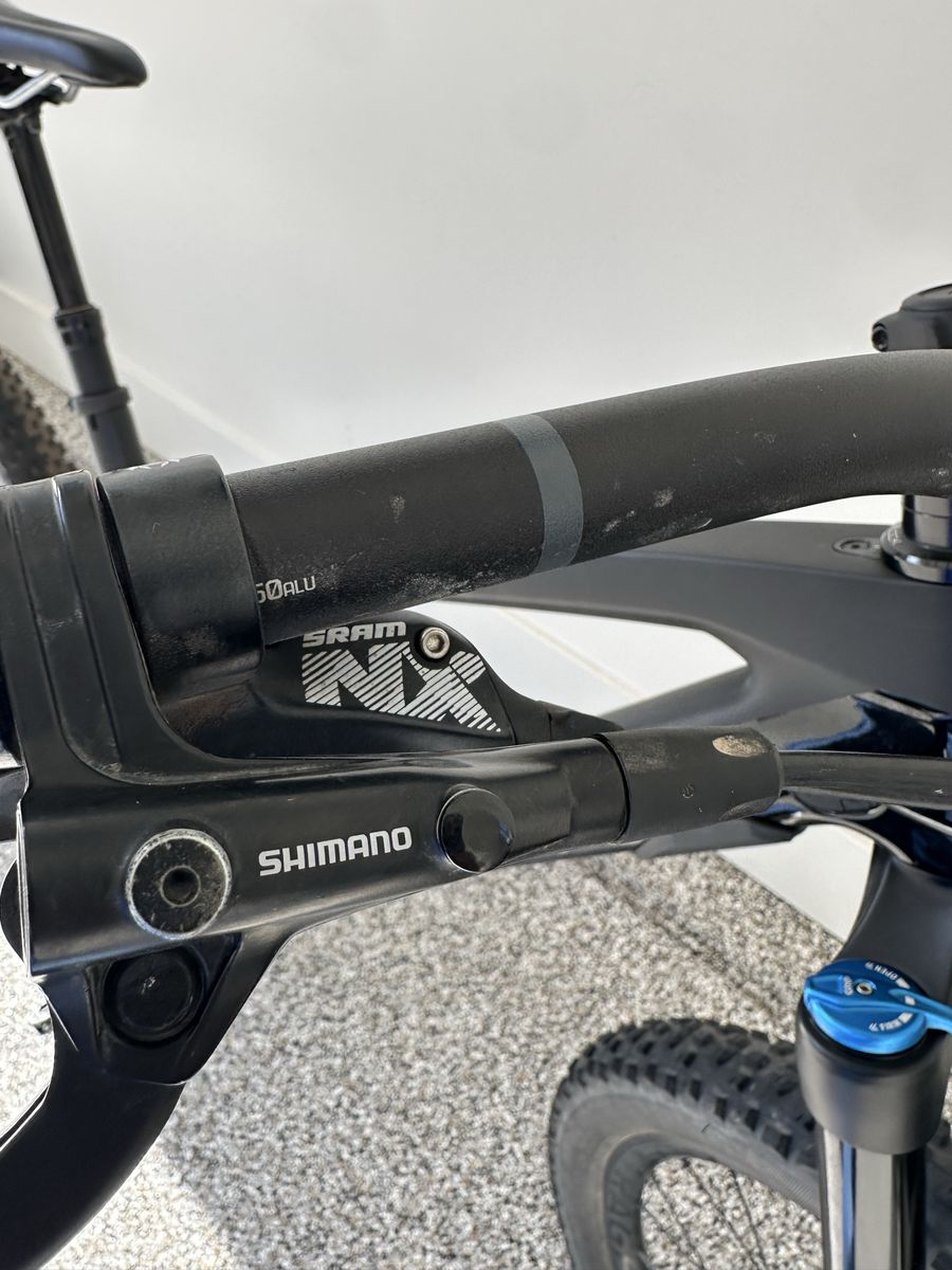 29 inch tires 1x12 gear SRAM nx shifter SRAM gx rear shifter Seat post adjuster Shimano brakes Fox suspension