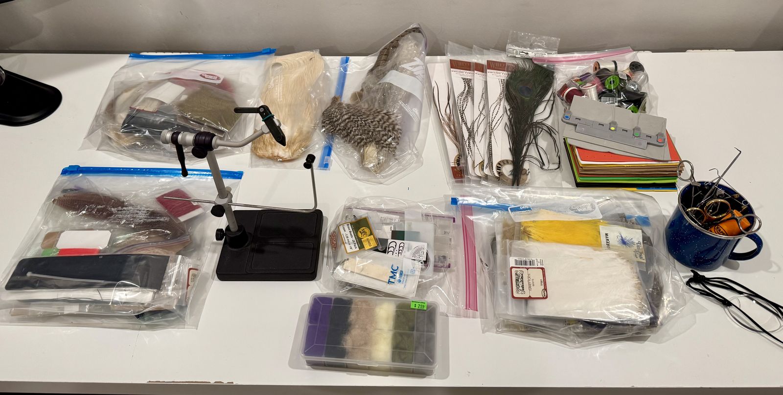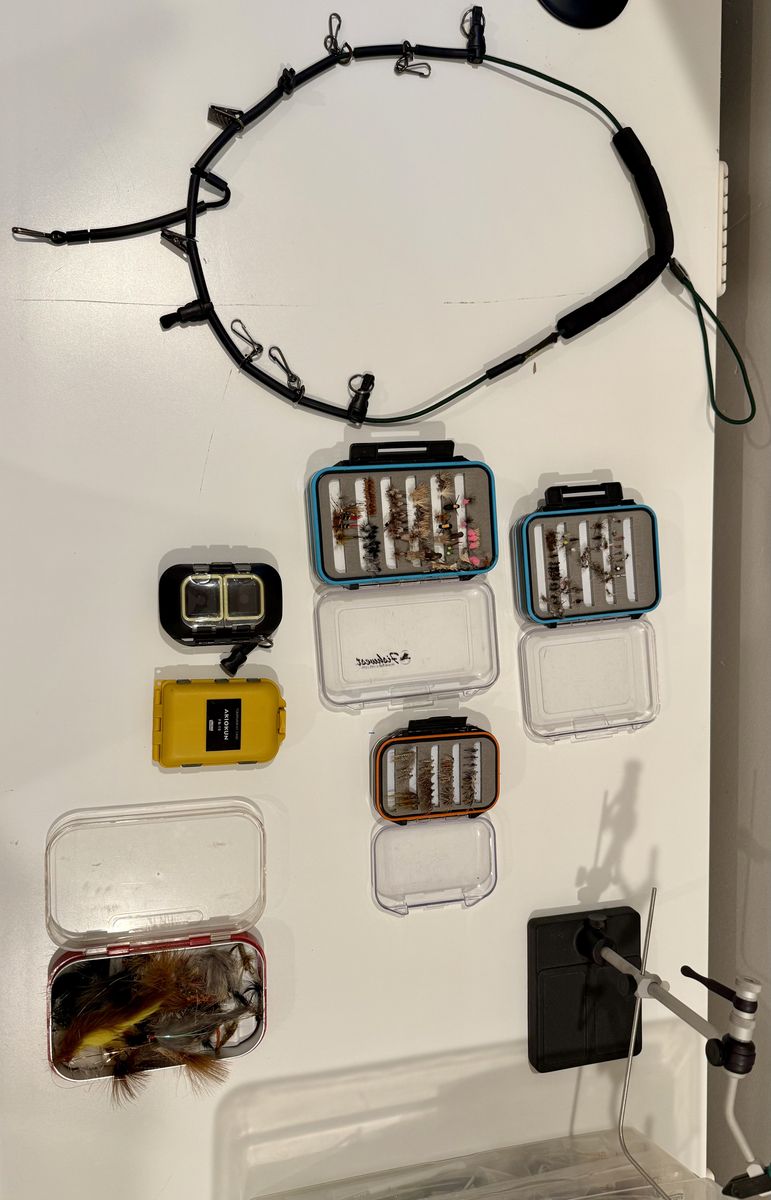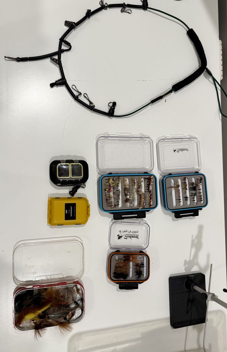 VenmoRenzetti 2200 traveler fly tying vice, tools, materials, and fully loaded fly boxes. The ultimate kit for tying flies on the go while traveling or at home, everything you need.