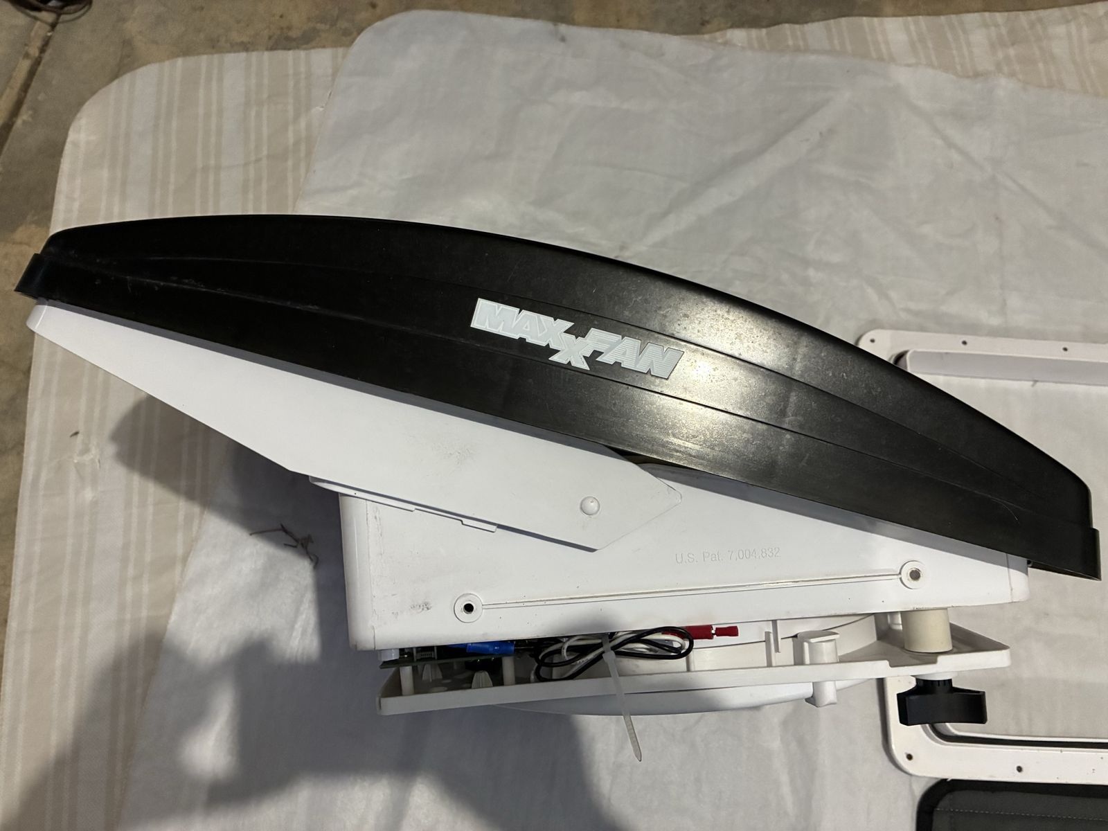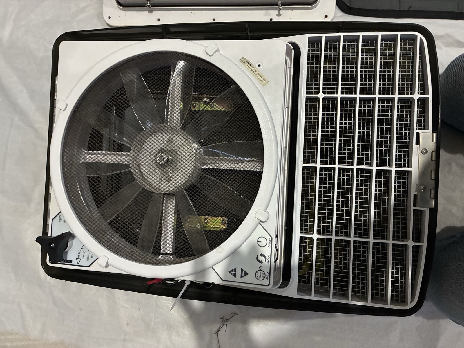 Selling a used maxair fan with 10speed and built in thermostat in great condition! It’s a manual so doesn’t come with a remote. This is a reversible model so it’s able to exhaust as well as blow in. Had it in my promaster van but went to an A/C unit so not needed anymore. Also comes with an inside magnetic cover to block out any light,cold or heat. $200 cash only! No scammers and local pickup only!!