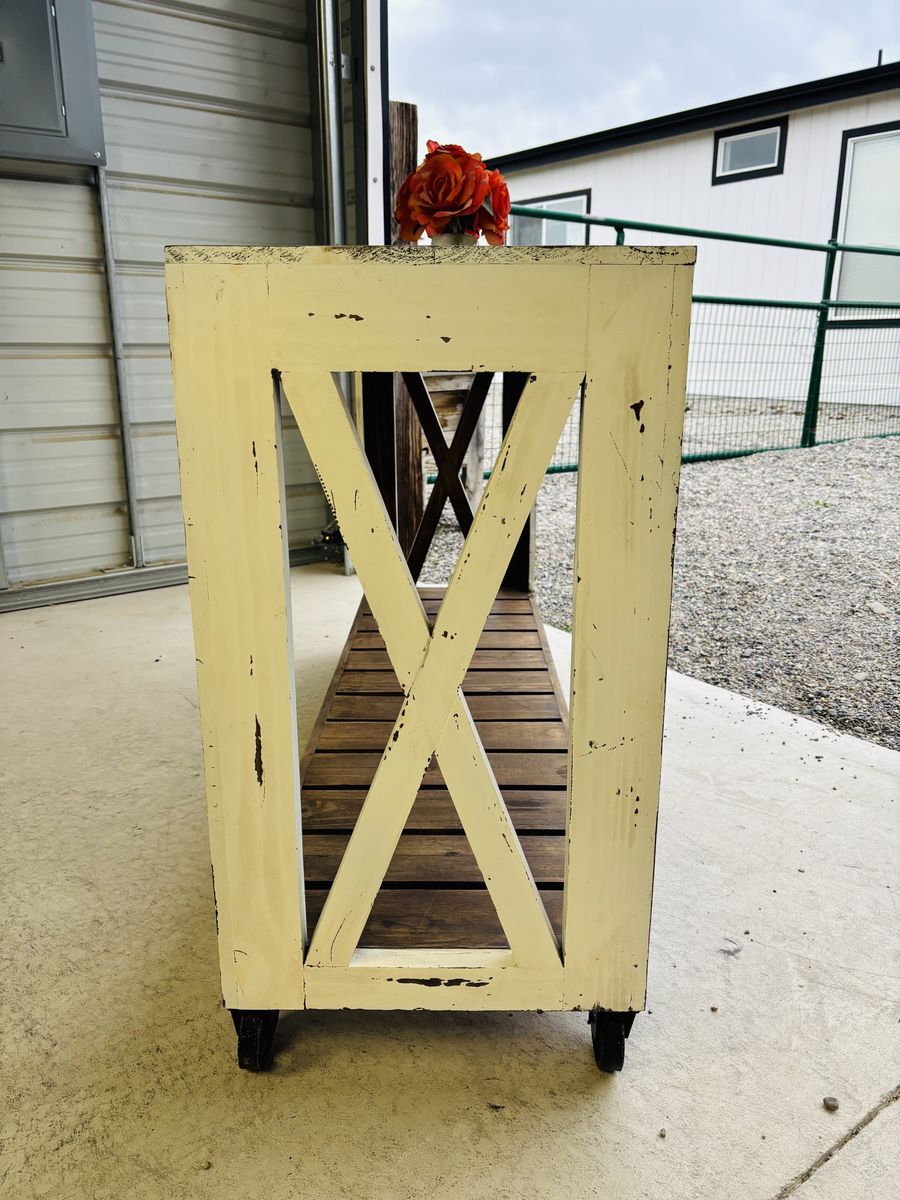 16” deep 56” long shabby 32” tall