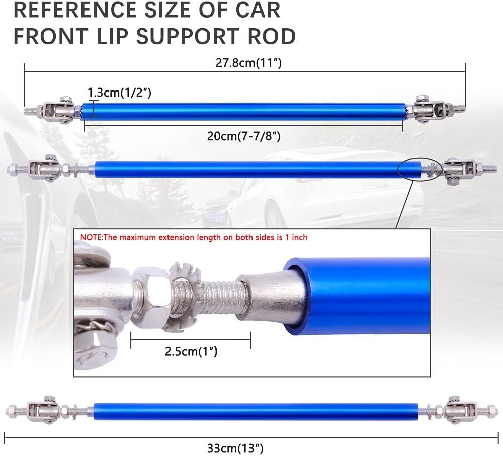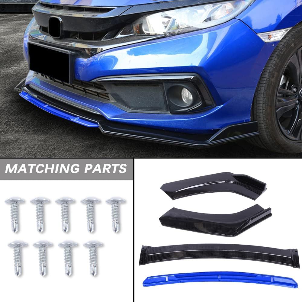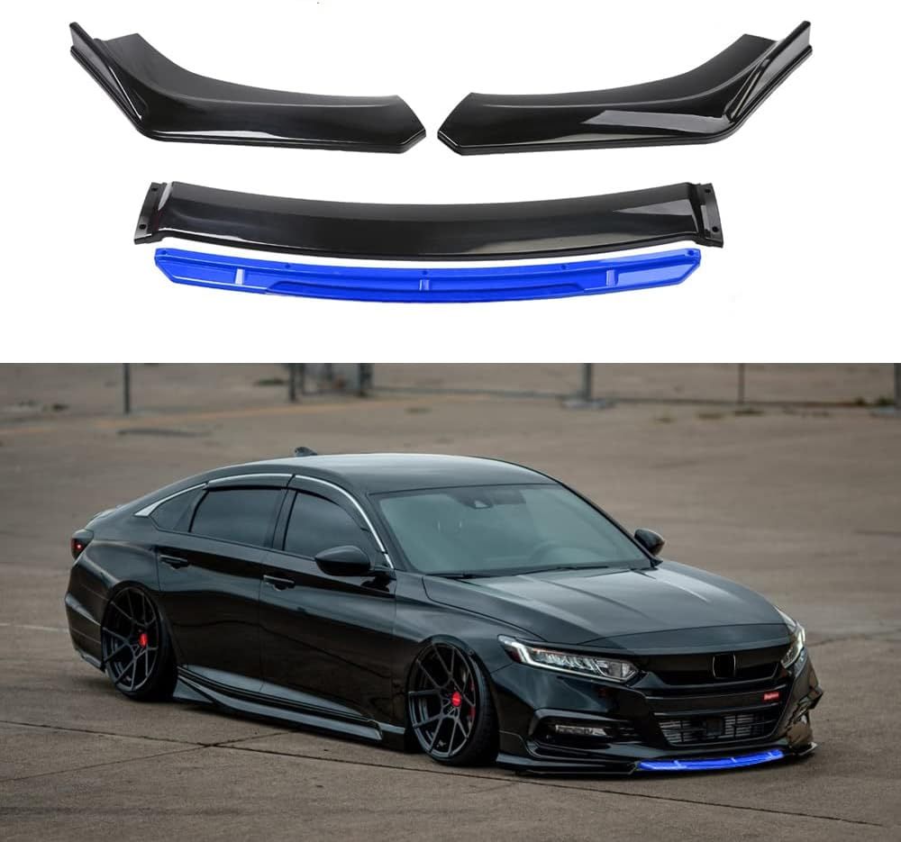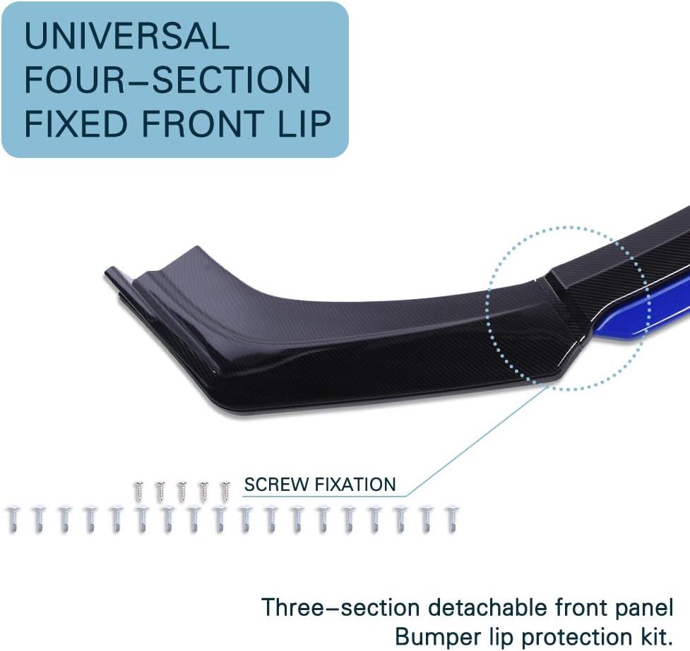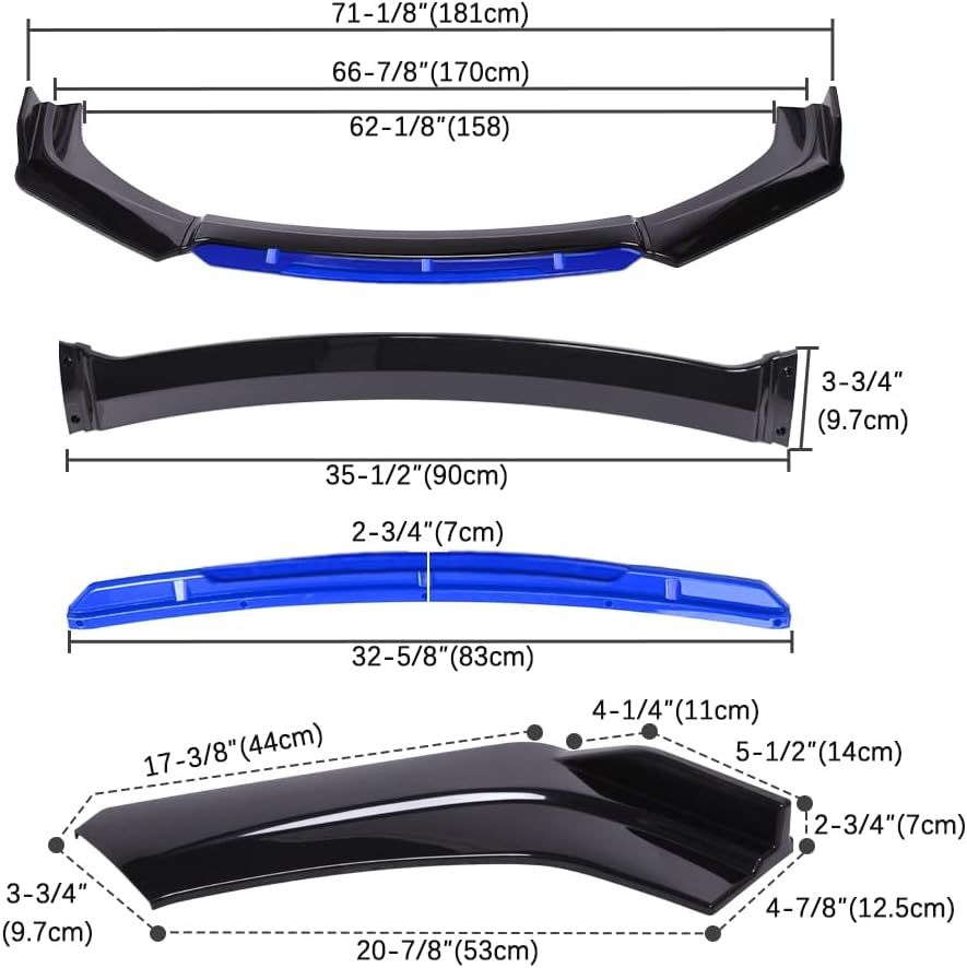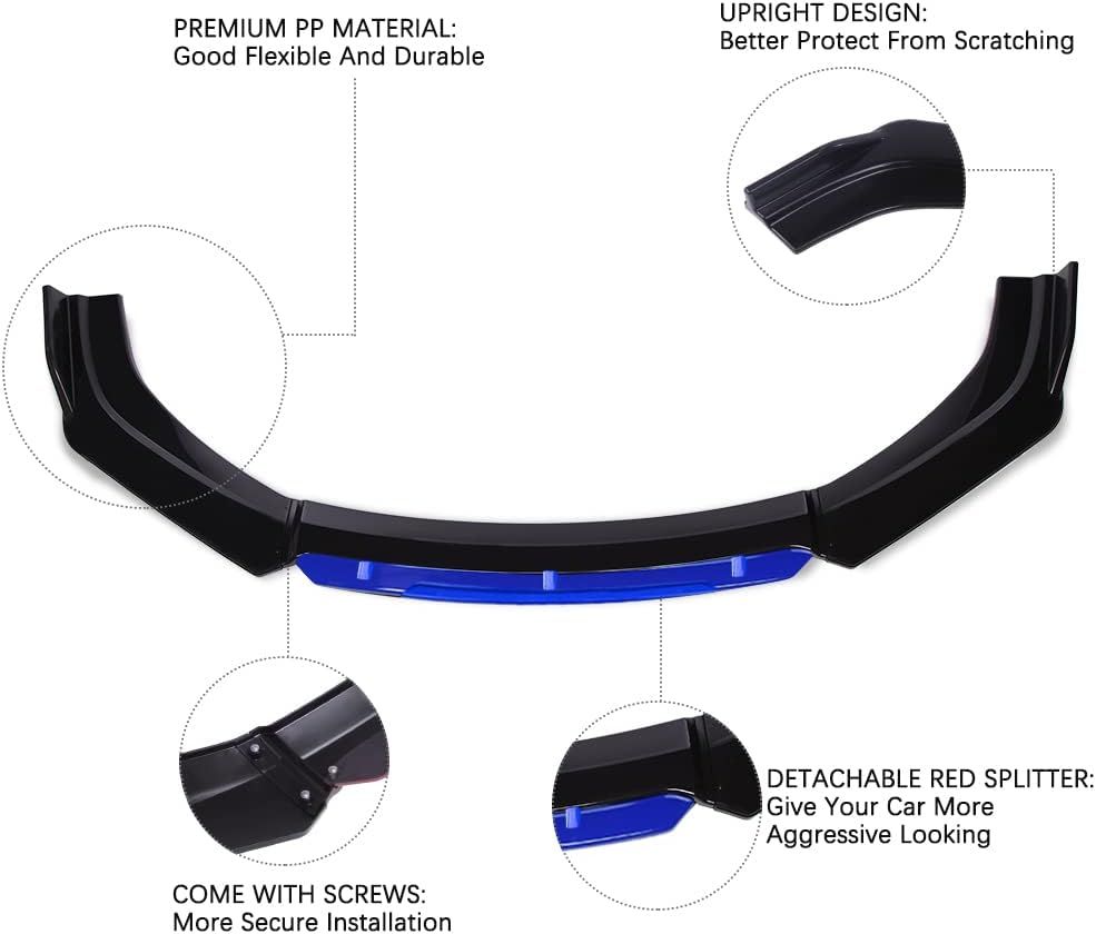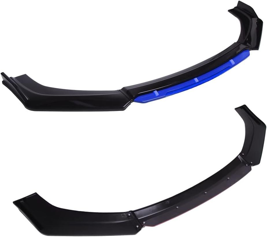 ApplePay4PCS Universal Car Front Bumper Lip Body Kit Splitter Spoiler Diffuser Protector with Adjustable 8"-11" Support Splitter Rods (Blue) - Gloss Black,Blue Tongue