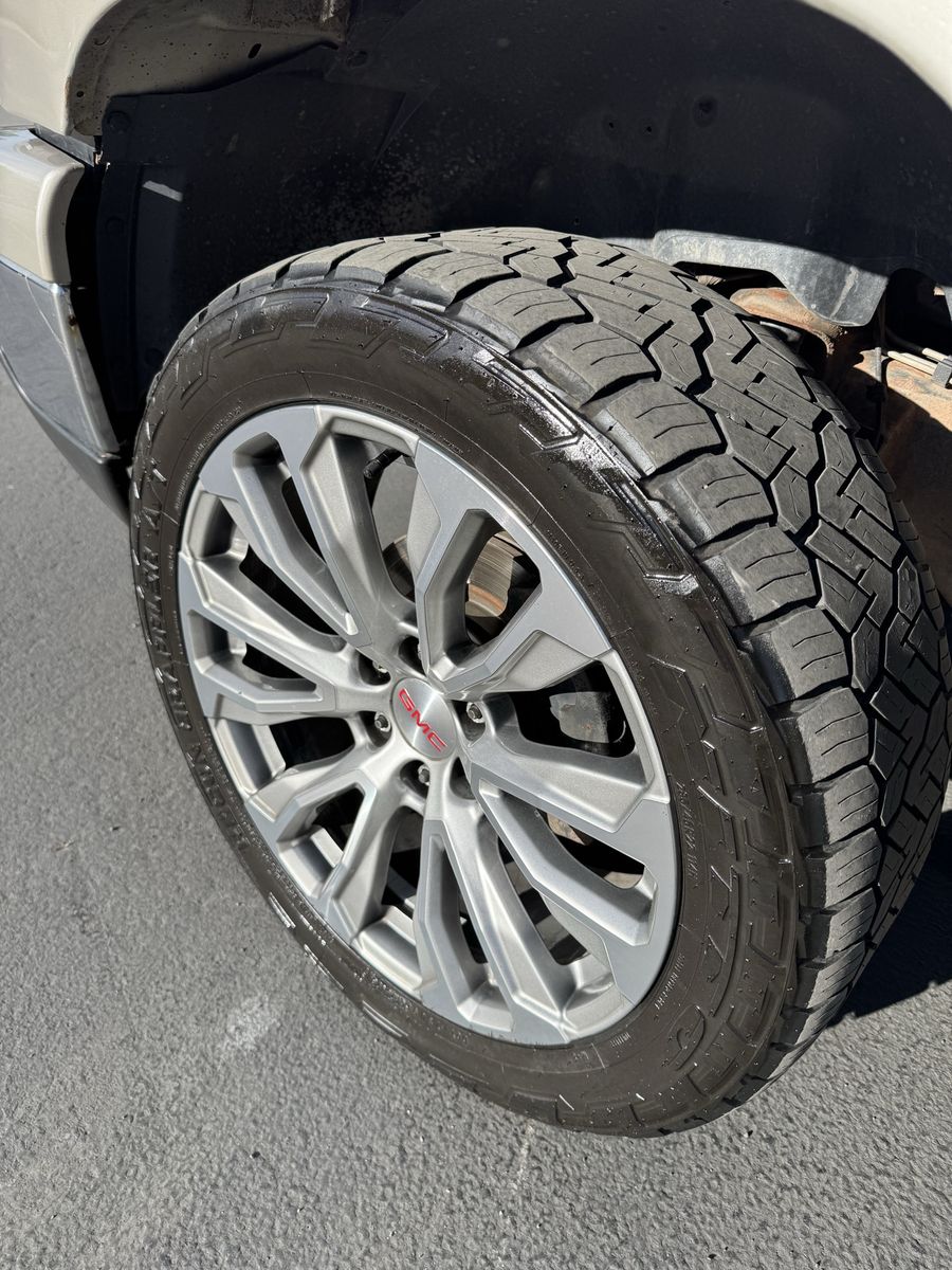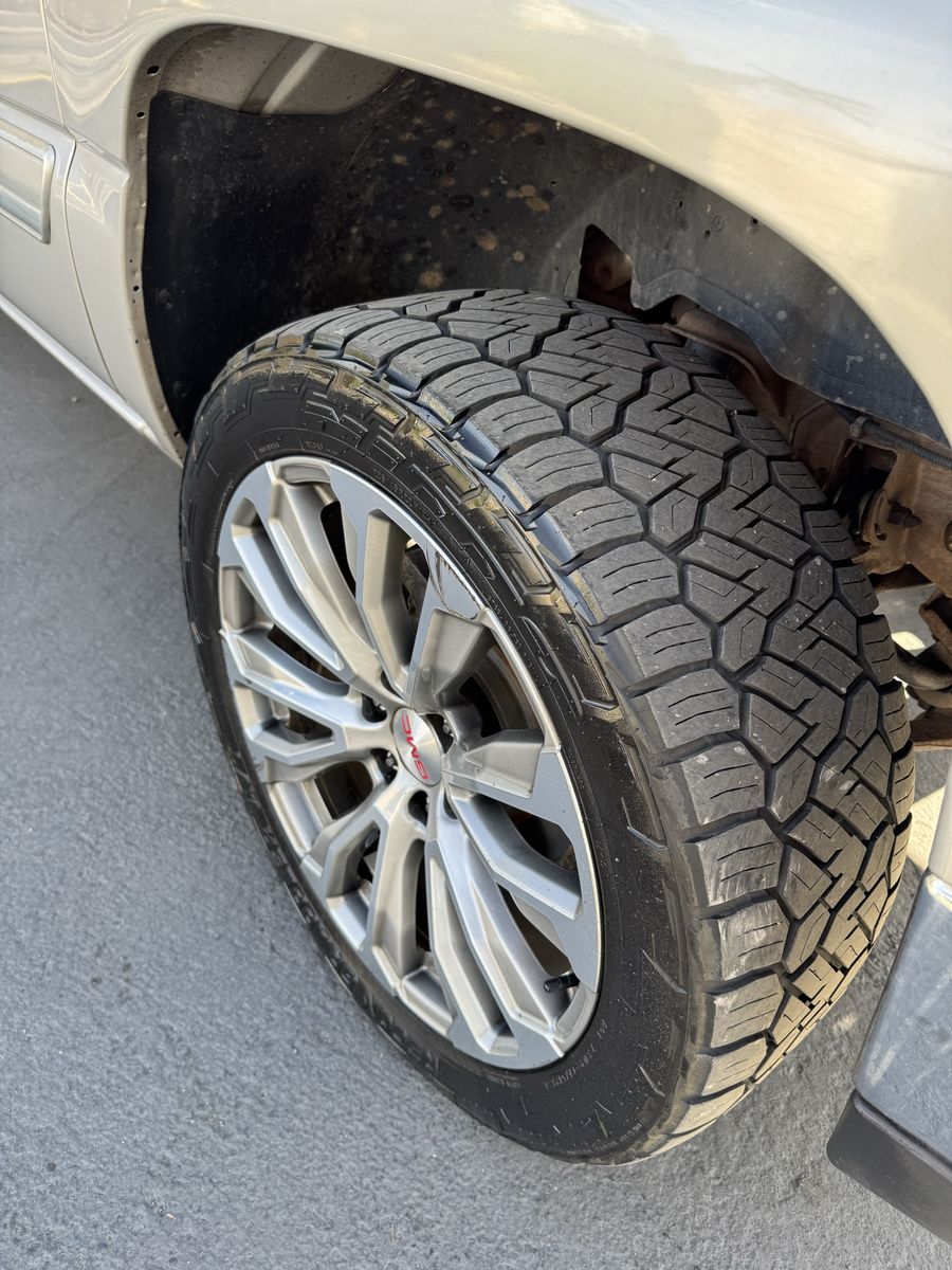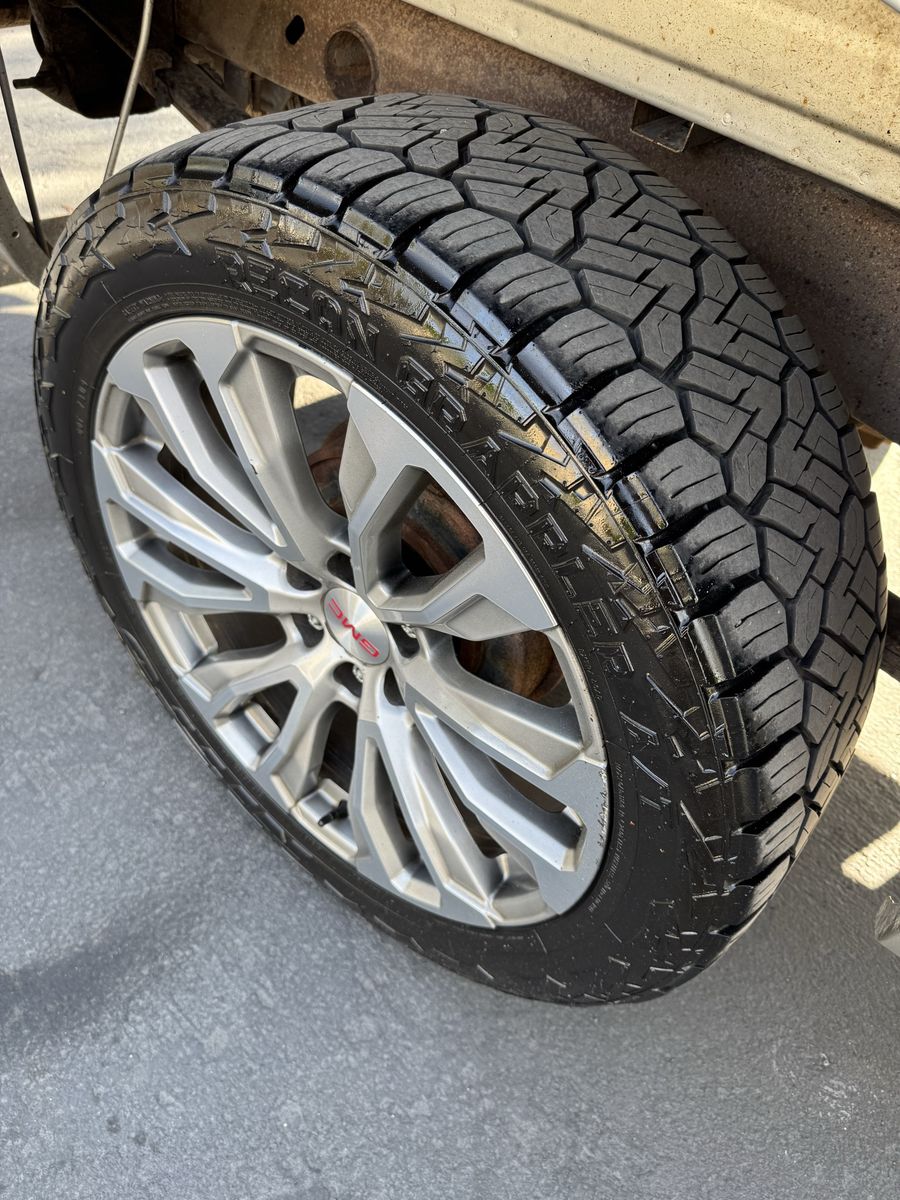 VenmoSitting on some NITTO Ridge Recon tires 285/45/22 all terrain. Wheels & tires are in good condition wheels do have some scratches nothing that affects them. I believe they still have there sensors in them.