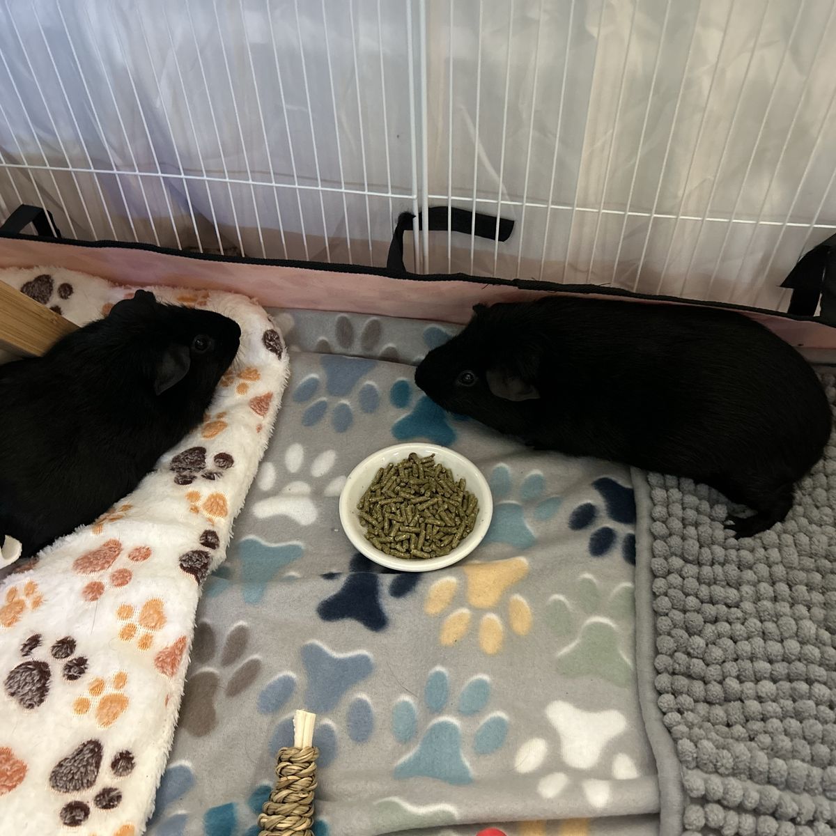VenmoBonded Guinea pigs and all supplies(Cage, 6 months worth of food, treats, bed, mat, hay feeder, water bottle, blankets/liner) text me for details