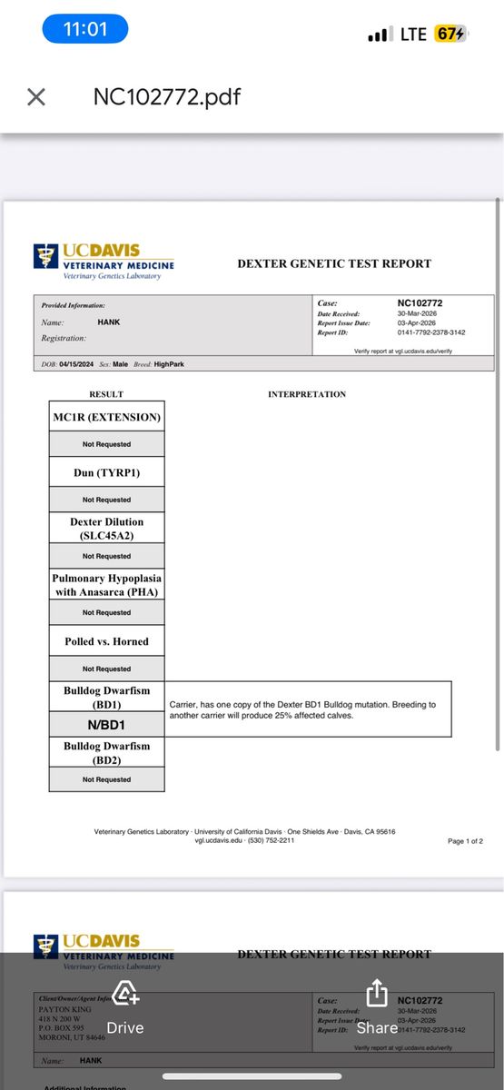 Venmo2 year old bull Genetic test done recently- results pictured in the last picture