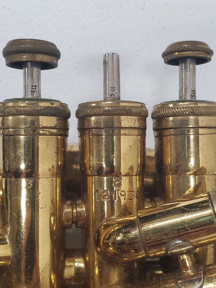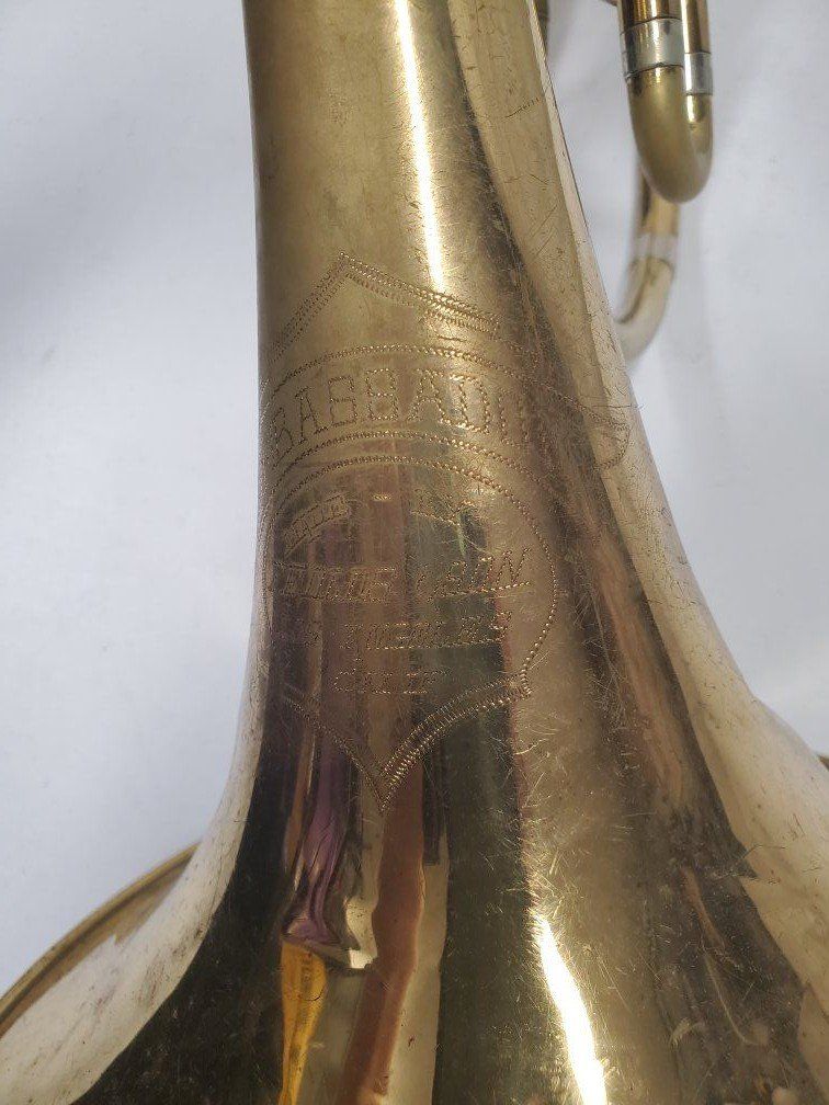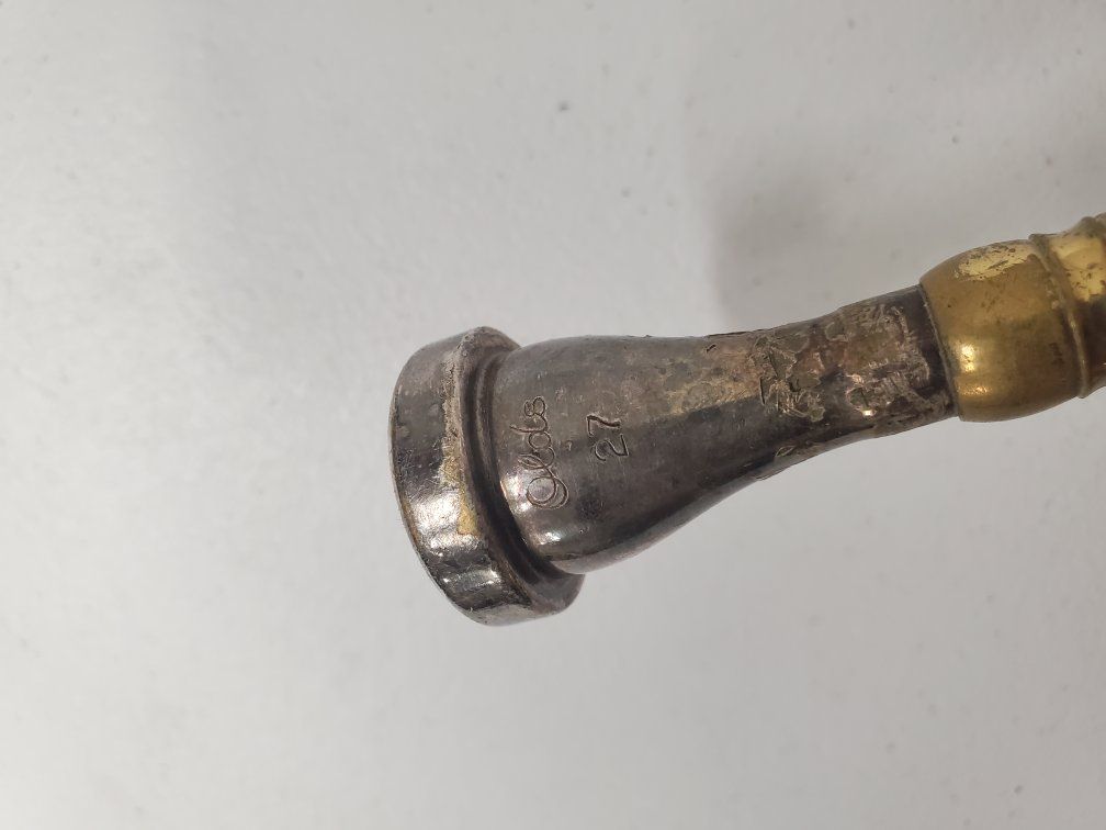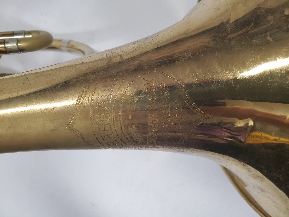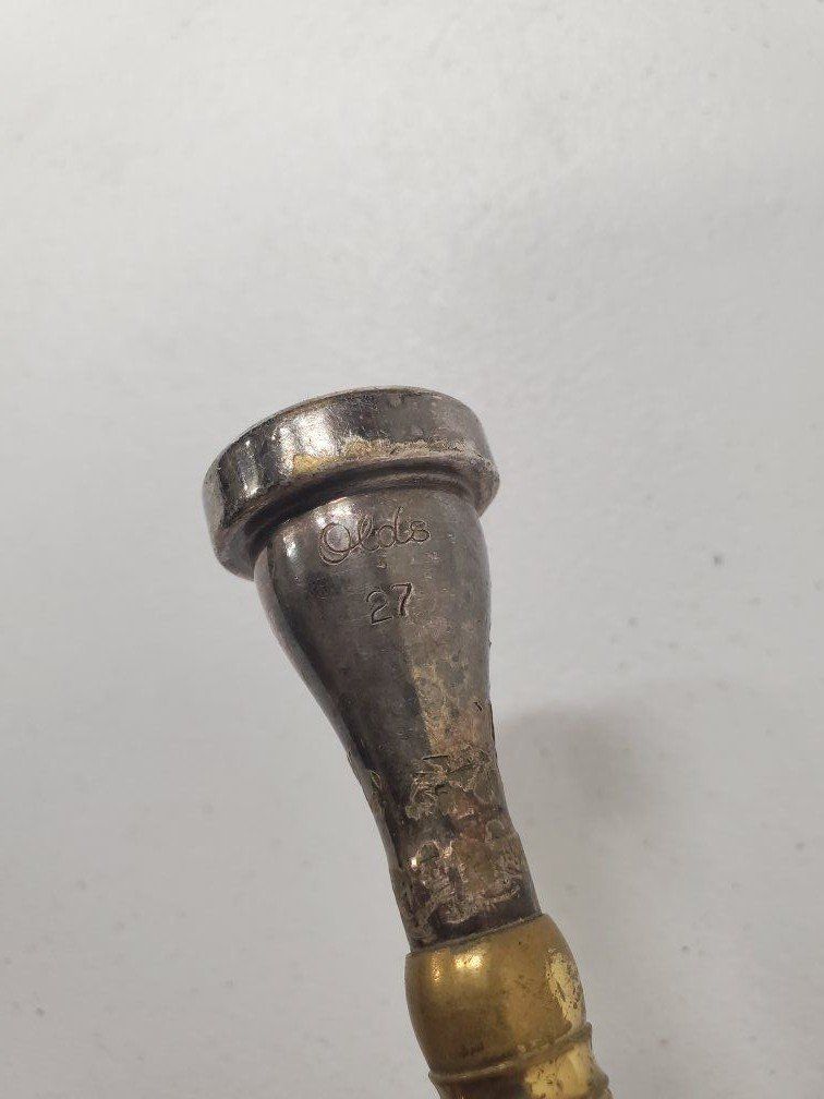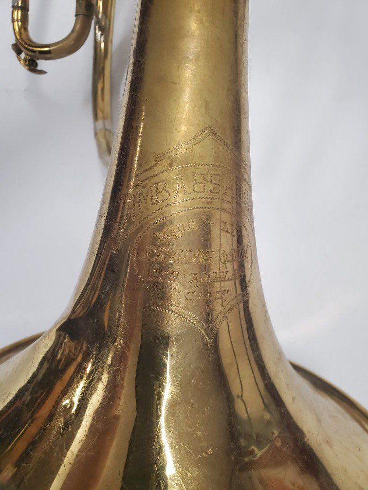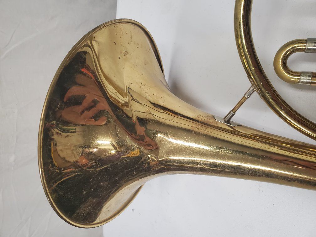 Venmo1954 Olds Ambassador french horn. Has damage, might be repairable, I don't know. My father used it as a decoration.