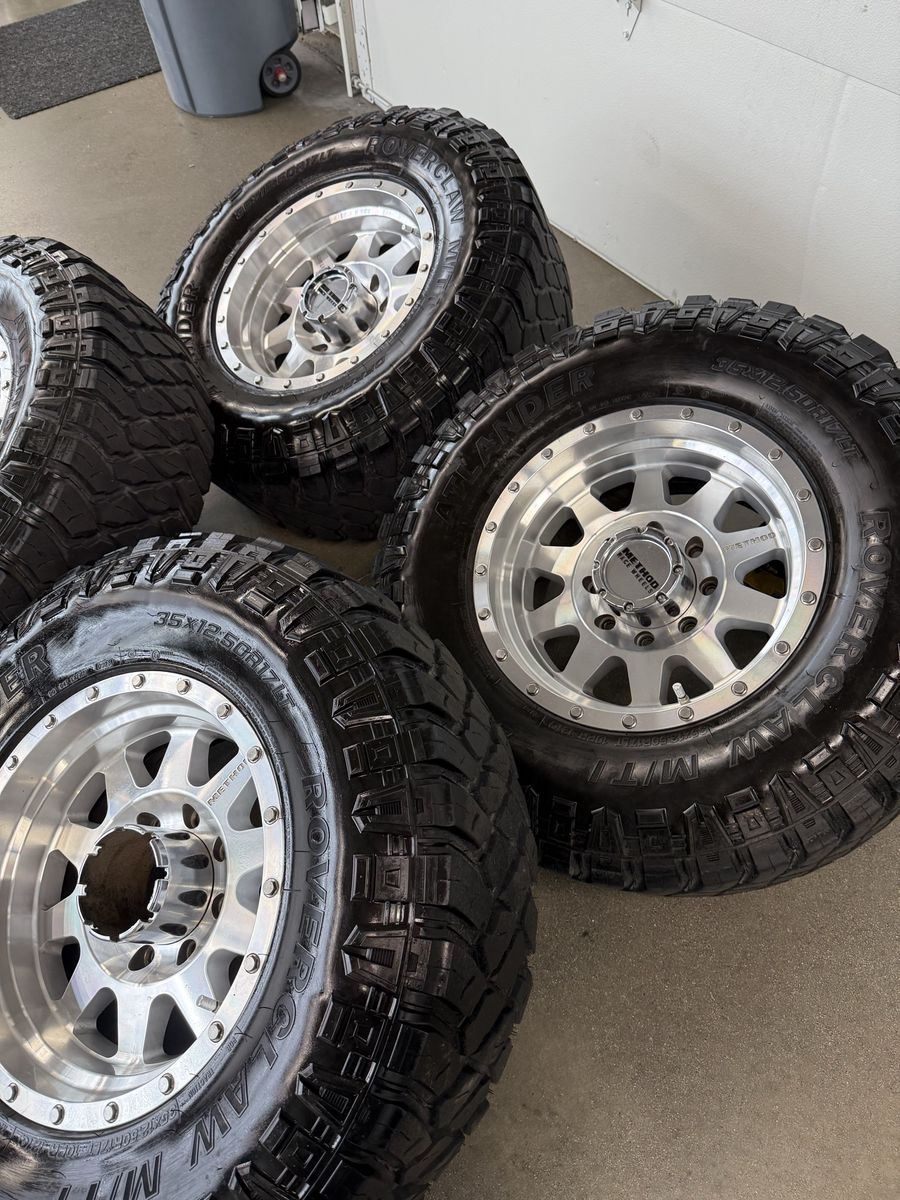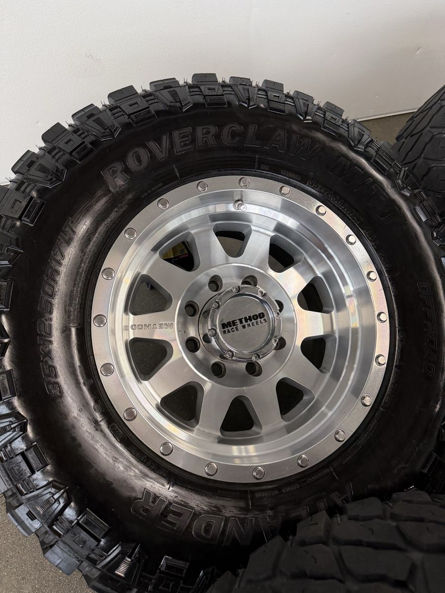 ApplePayWhole setup is in great shape! 17x10 method race wheels 35x12.50r17 roverclaw m/t tires