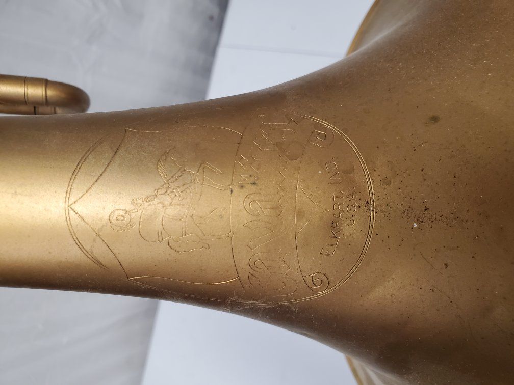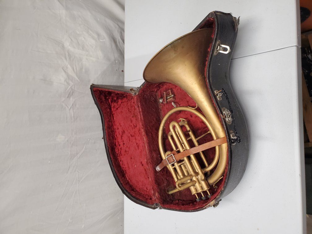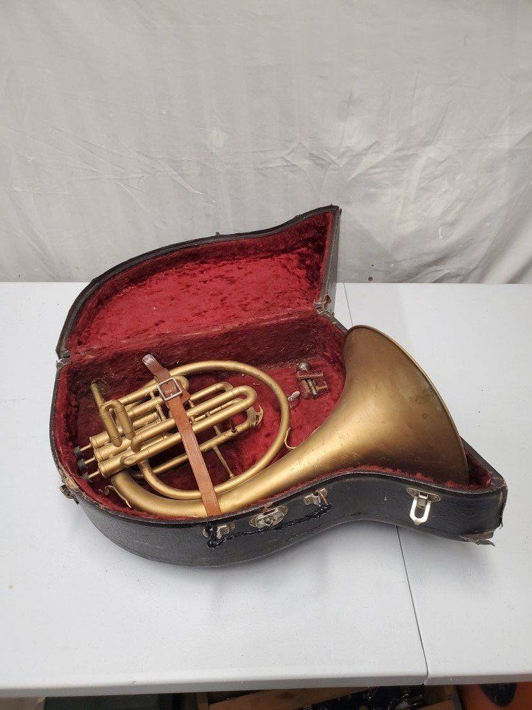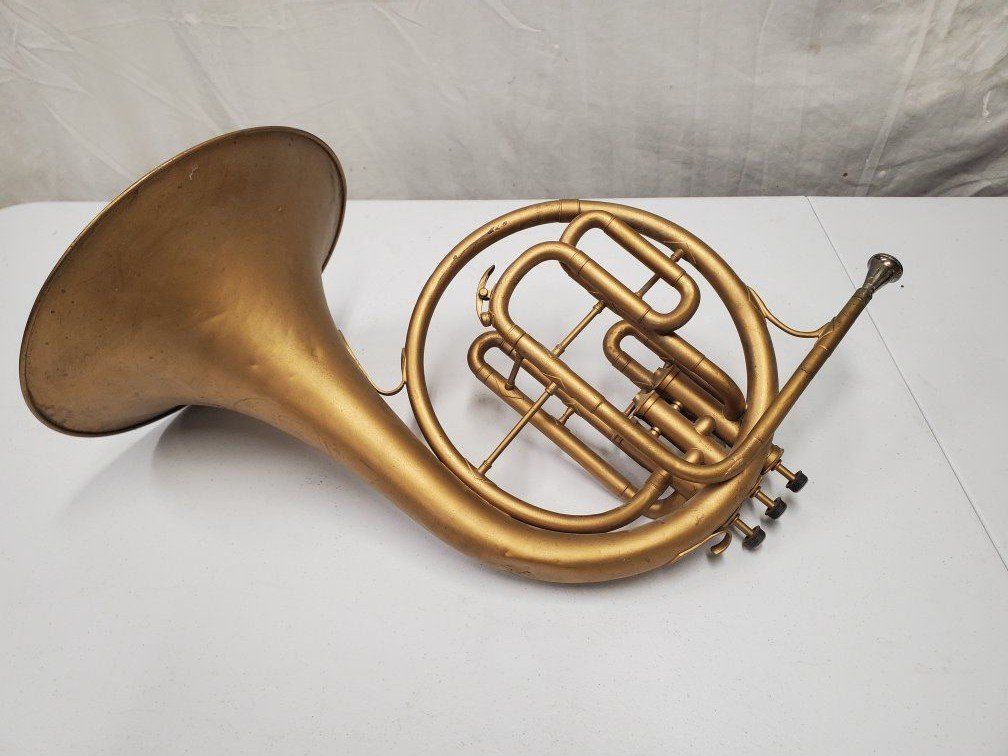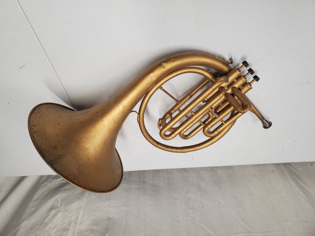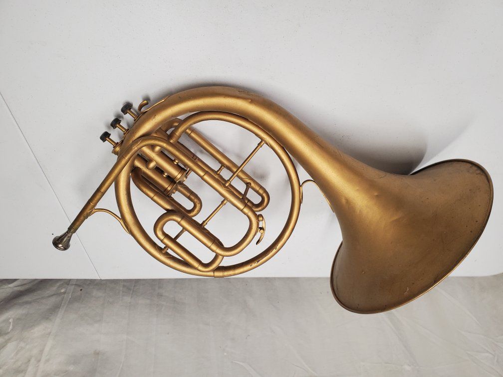 Venmo1941-42 Conn Cavalier french horn. It's damaged but should be repairable. My father was using it as a decoration.