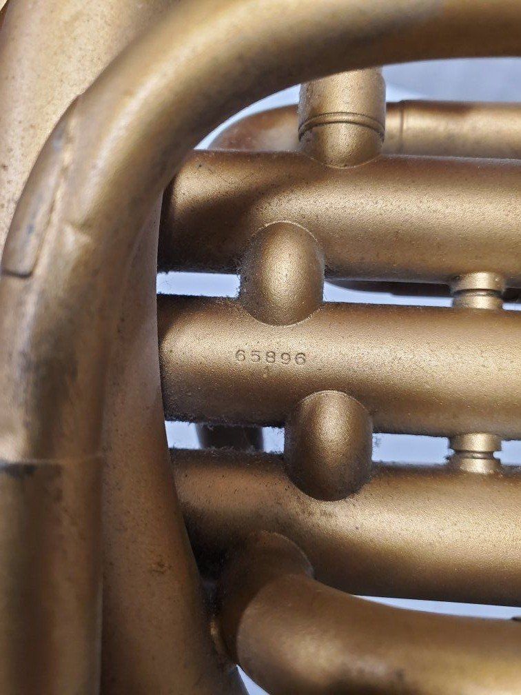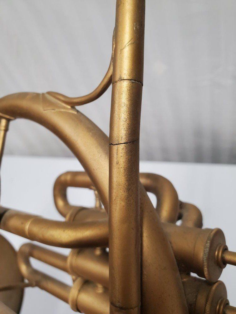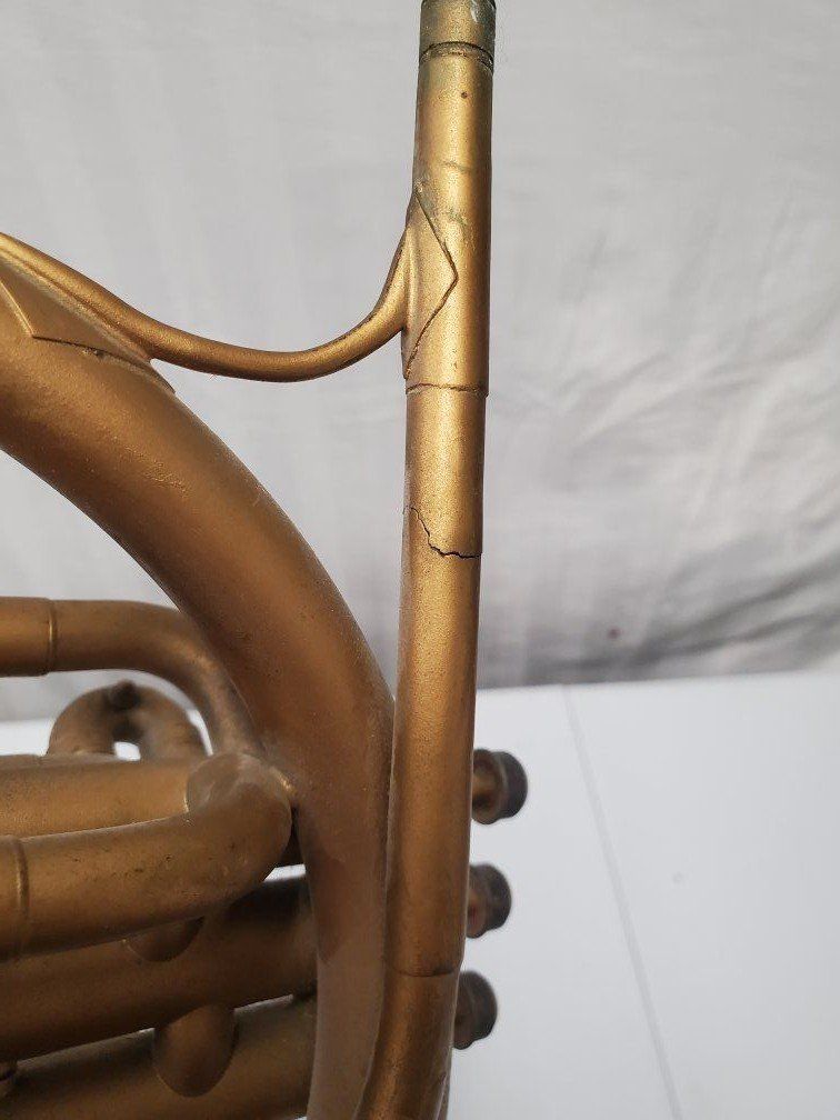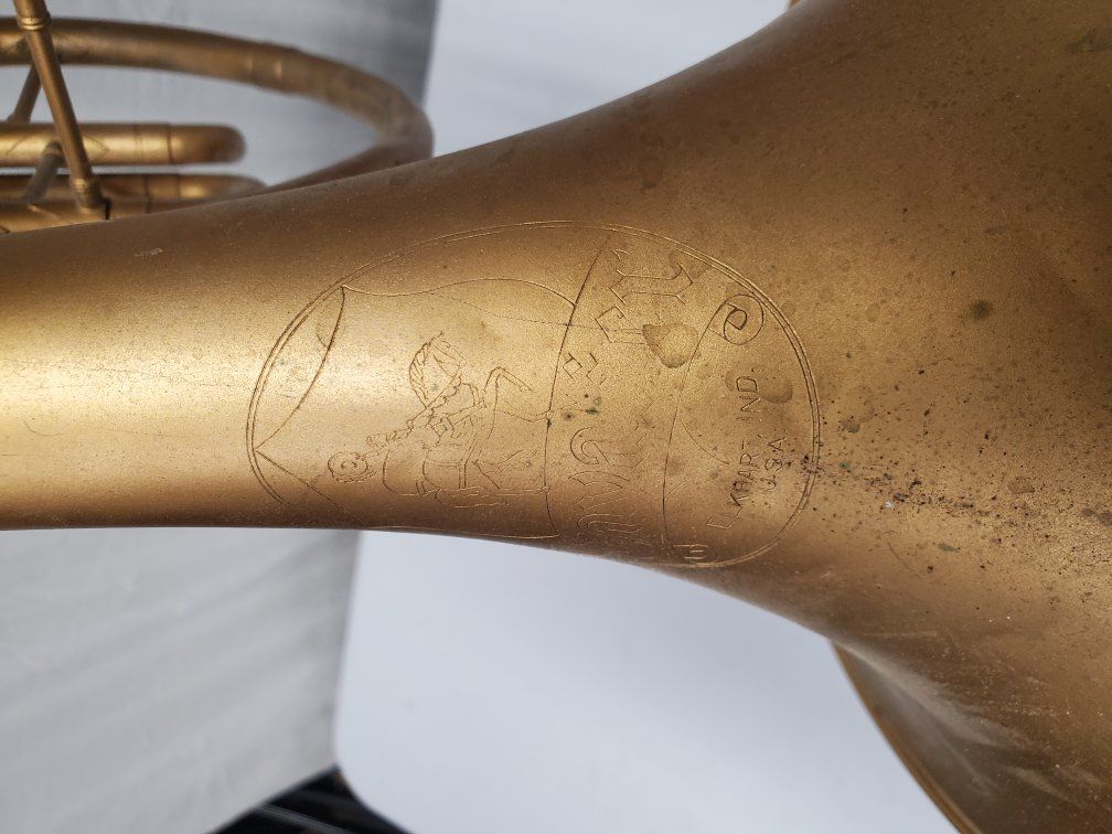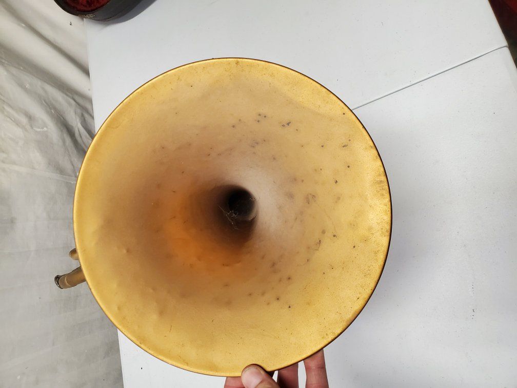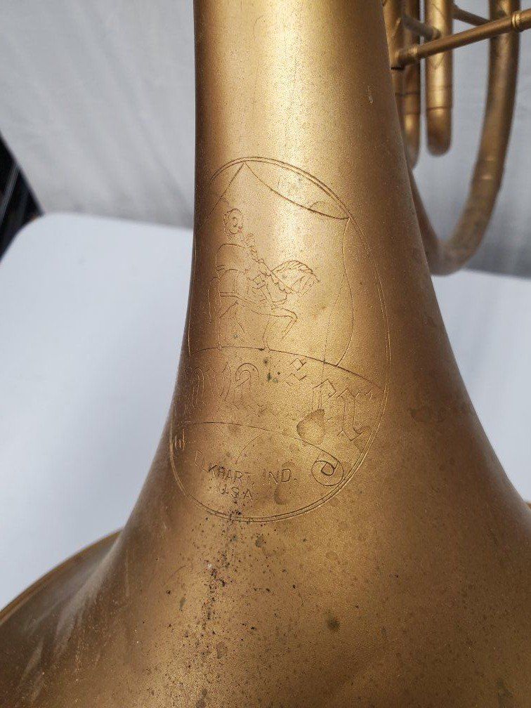 Venmo1941-42 Conn Cavalier french horn. It's damaged but should be repairable. My father was using it as a decoration.