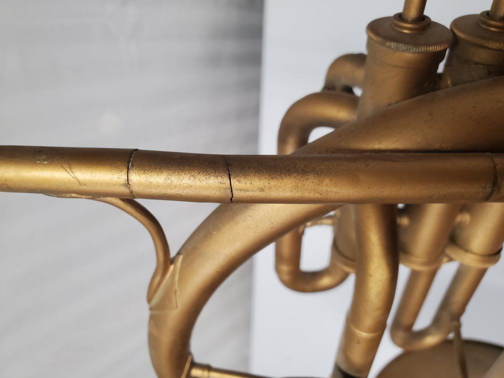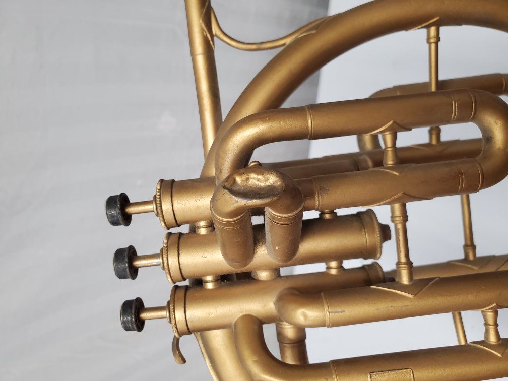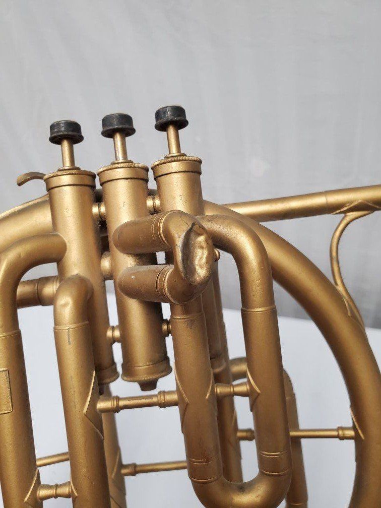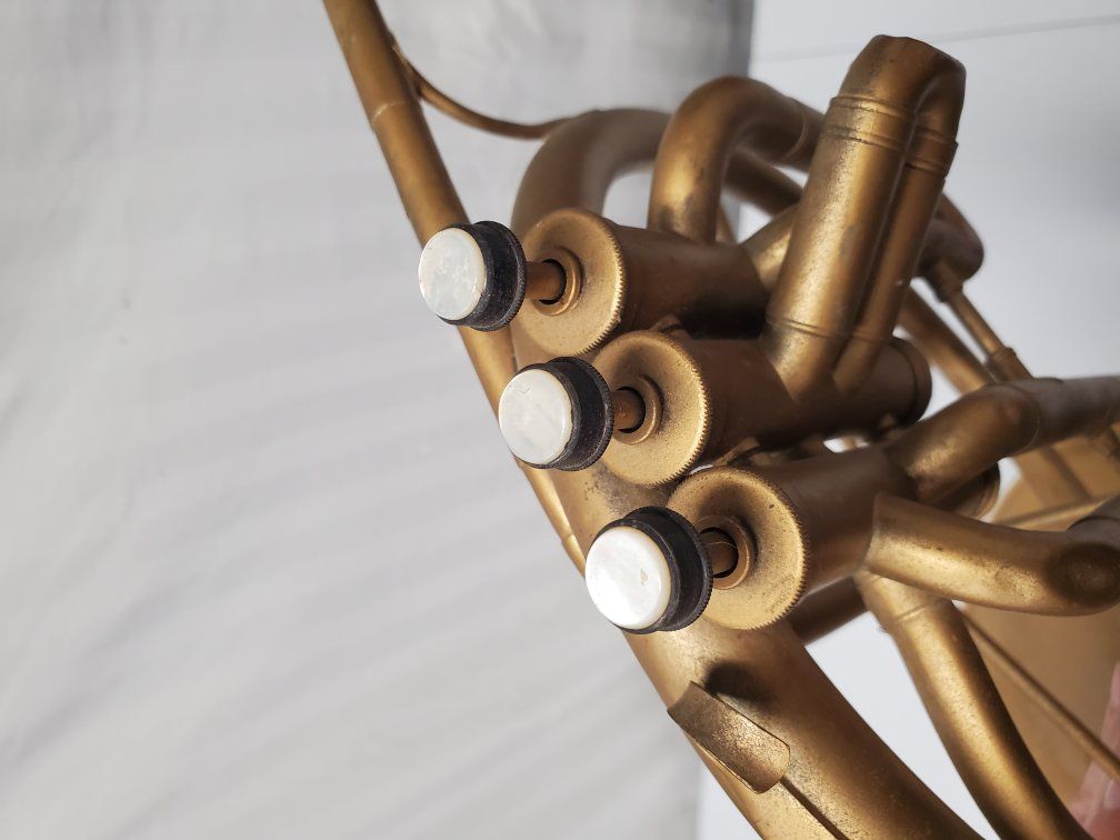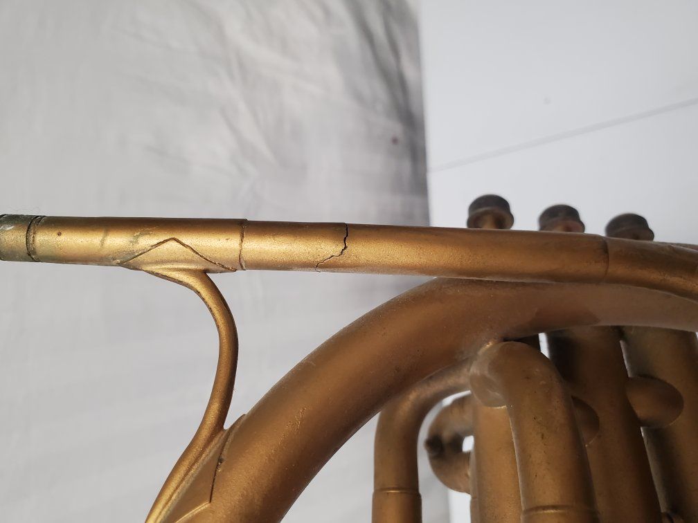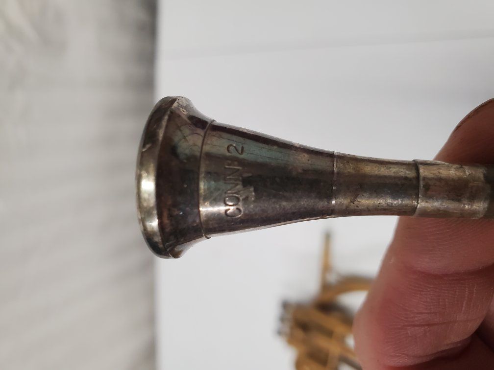 Venmo1941-42 Conn Cavalier french horn. It's damaged but should be repairable. My father was using it as a decoration.