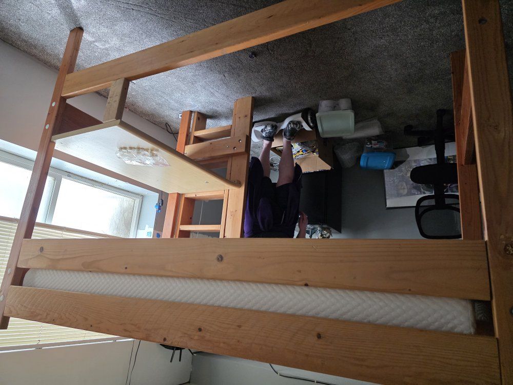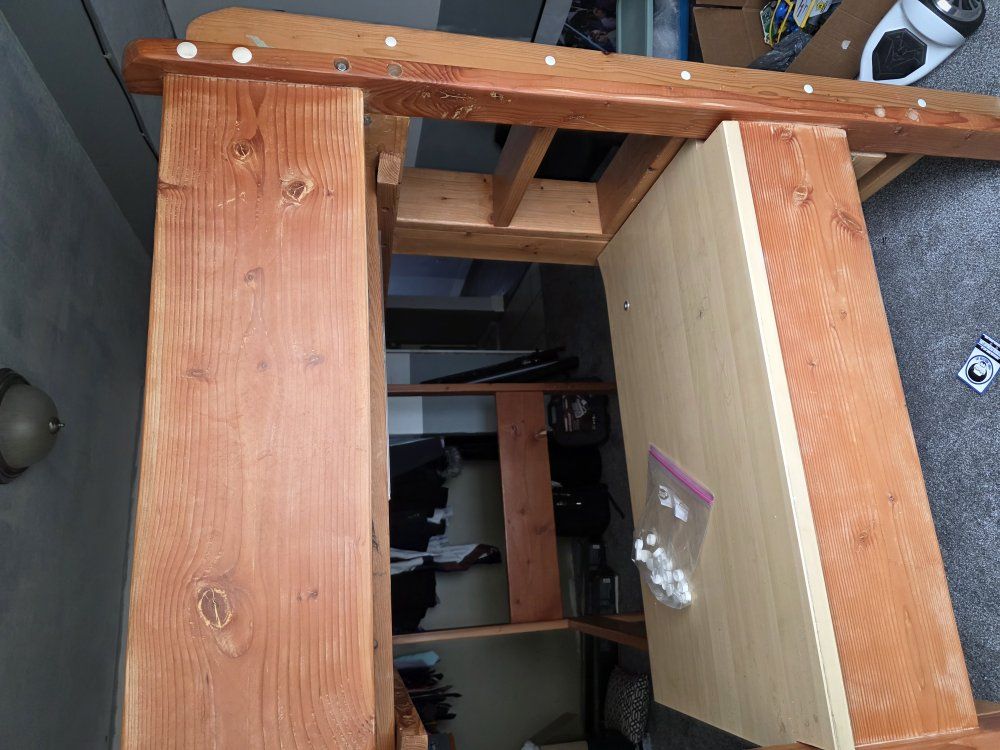 VenmoThis is a solid wood, twin size, loft bed with desk underneath. It is in great condition. It saves space in the bedroom and is fun for kids. The desk underneath is a perfect place for homework, reading, or crafts. My daughter even had her dresser under it. My kids have outgrown it and we no longer need it. It has been taken apart and is ready to go. Before taking it apart, I labeled each piece with blue painters tape to make reassembling it easier. You'll need a rachet, socket, and Phillips screwdriver to put together. The bed is currently located in Plain City. Delivery may be possible for a fee and if the bed has been paid for in full. CASH or VENMO only! NO SCAMS! NO CODES!