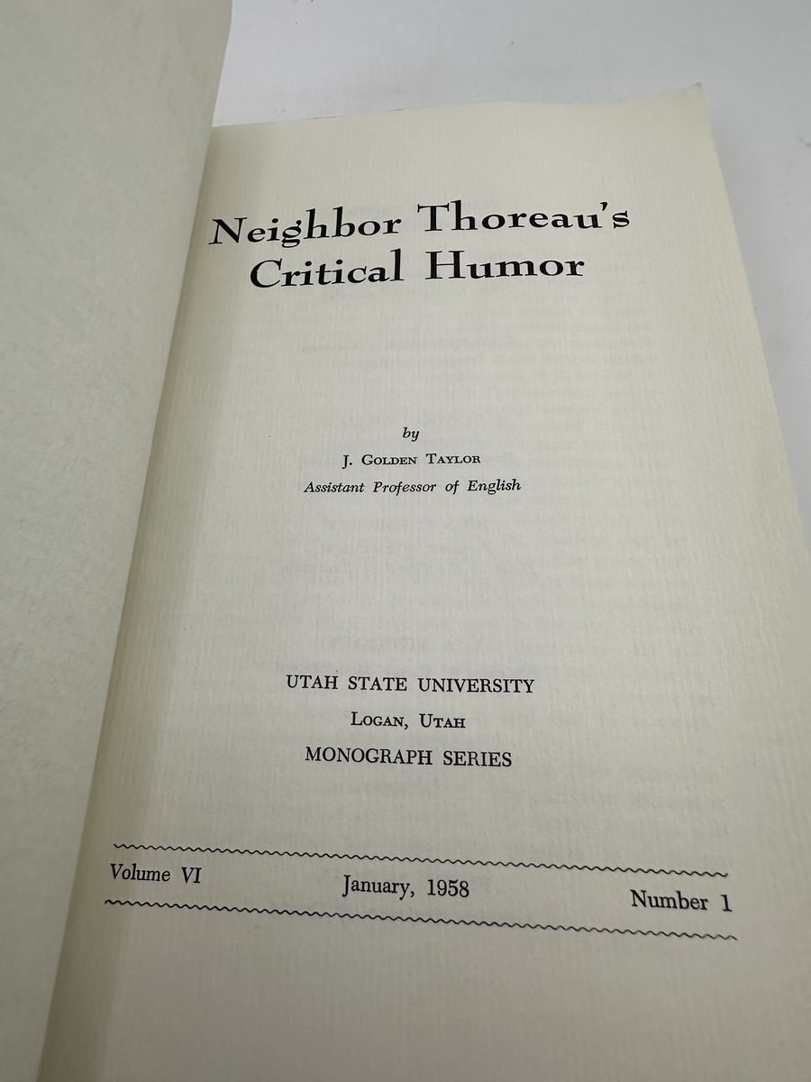 ZelleVintage 1958 Utah State University monograph Neighbor Thoreau’s Critical Humor by J. Golden Taylor. Scholarly literary criticism focused on Henry David Thoreau and American transcendentalism. Ex-library copy with stamps and wear, but complete and readable—ideal for collectors, researchers, or academic use.