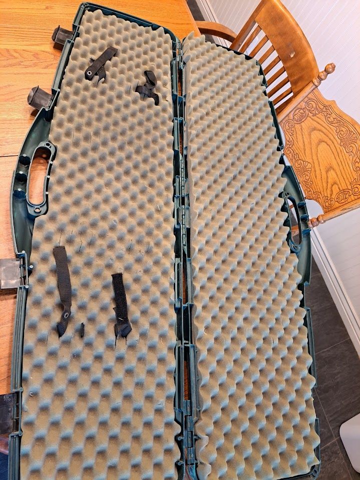 Foam lining with straps to keep guns in place. Holds 2 shotguns. Used, but still very usable.