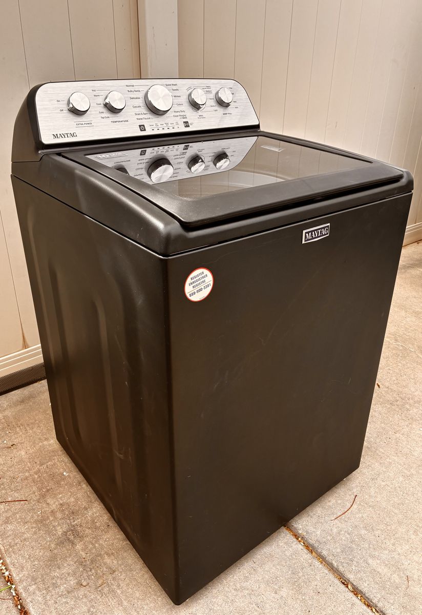VenmoMAYTAG Top Load Washer 2024 build. Like New! Excellent Condition. Heavy duty large 4.7 cu. ft. Stainless steel basket, strong 360° powerful agitator wash action. 11 wash cycles, 5 temperature settings. Auto sensing water levels and Deep Fill option. Dimensions: 27.75”W x 27”D x 40.88”H. This is an excellent Maytag choice if you want a powerful agitator washer with modern features, large capacity, and dependable cleaning performance. Water hoses included. Delivery and installation available. Call or message. Satisfaction guaranteed!