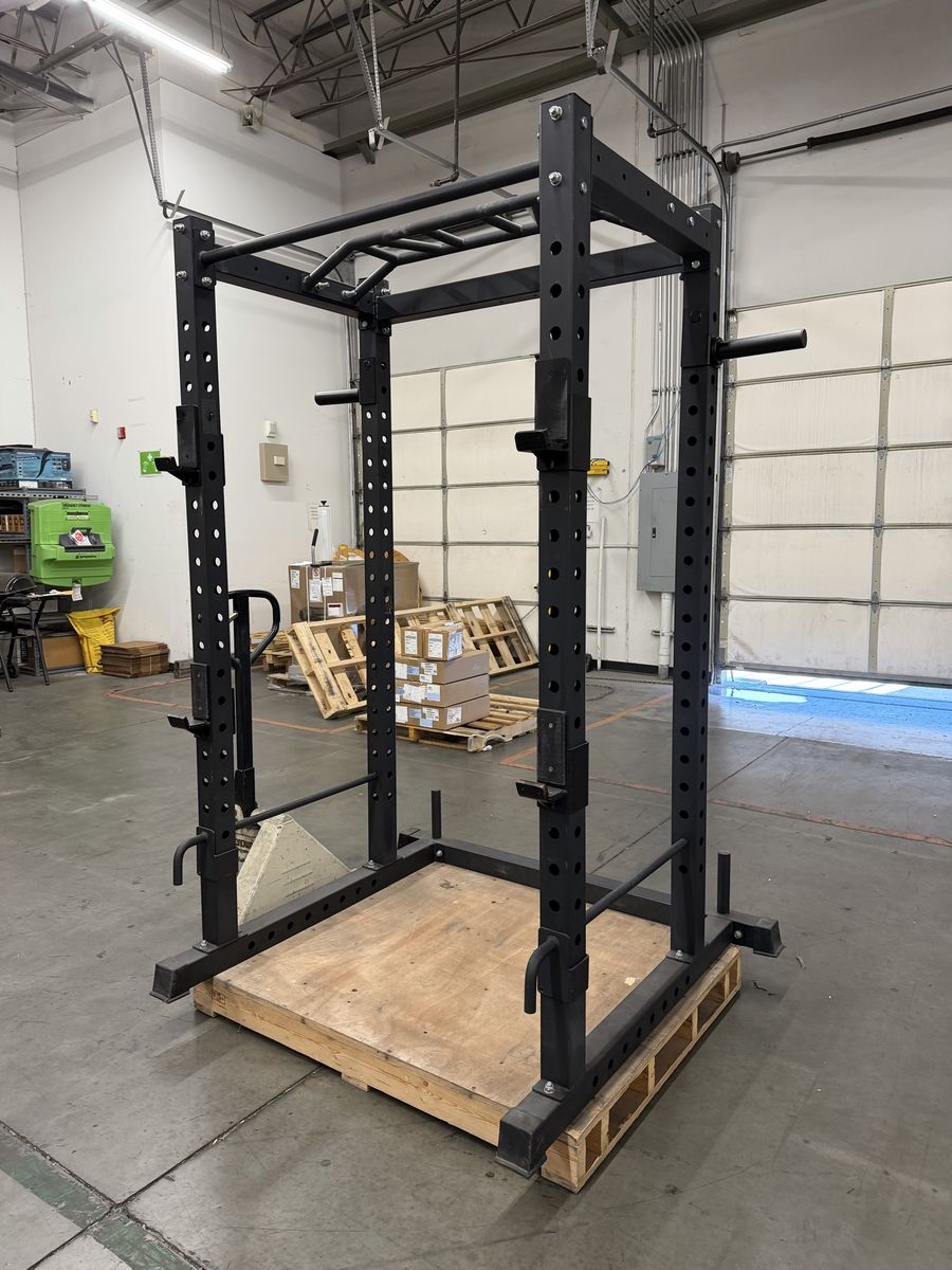 Comes with the following 2 sets of J hooks Spotter pins Pull up attachment Weight storage connections for sides of rack This is a great deal for the price and condition.