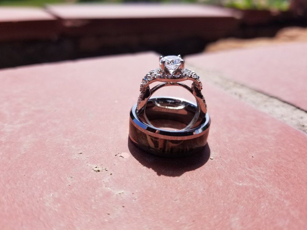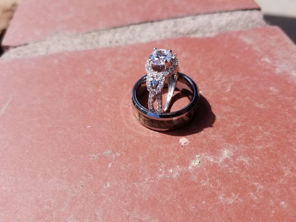 VenmoThis stunning halo engagement ring hand crafted from quality 10k white gold features a full carat center cubic zirconia accented by two vibrant blue topaz. Fifty brilliant pavé-set diamonds shimmer throughout this sweet vintage inspired engagement ring guaranteed to take her breath away. Ring is Size 4. Message or text if interested. Pickup only. Cash or Venmo only.