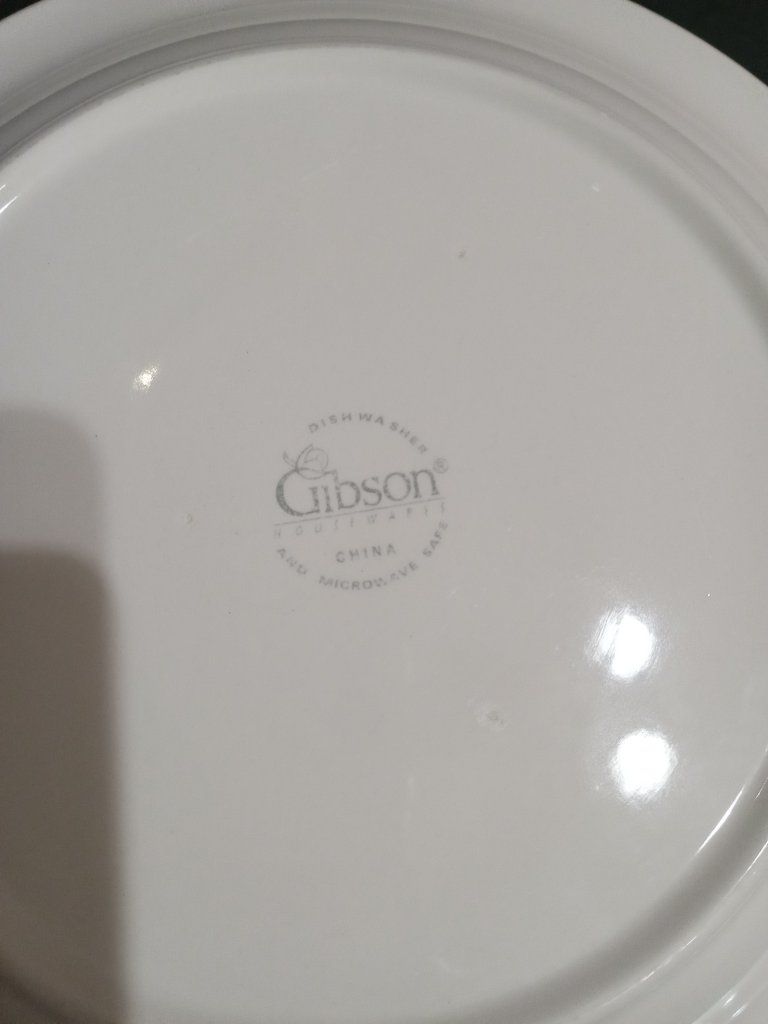 25 pieces available of durable country-style Gibson brand China dishes. Dishwasher and microwave safe.
