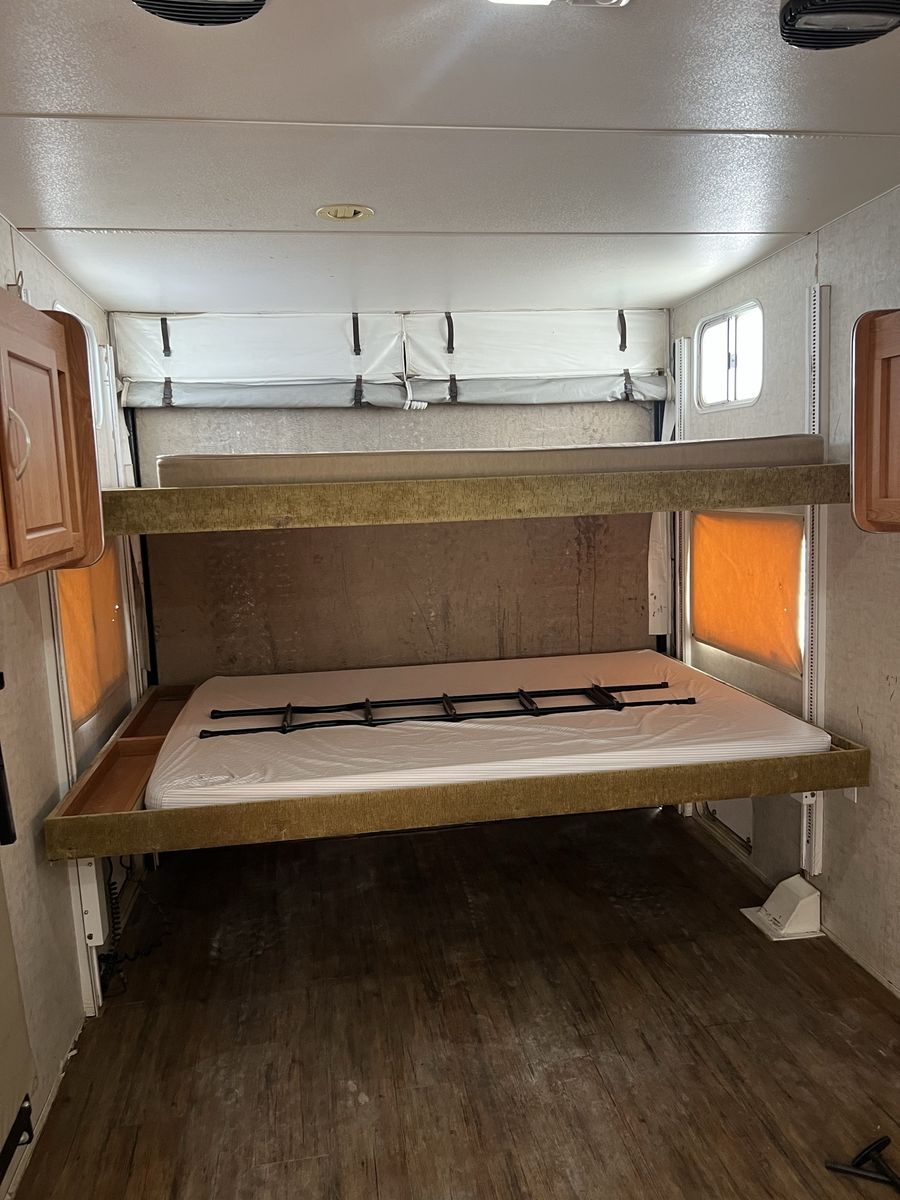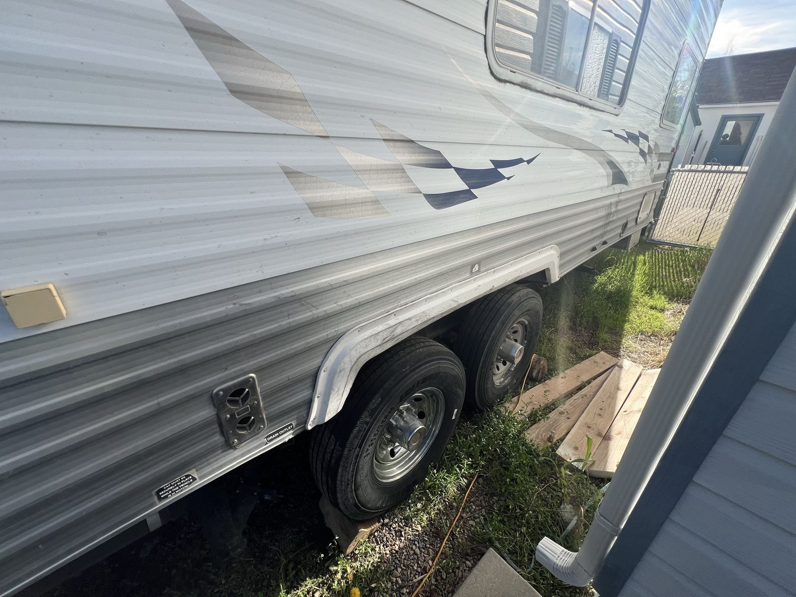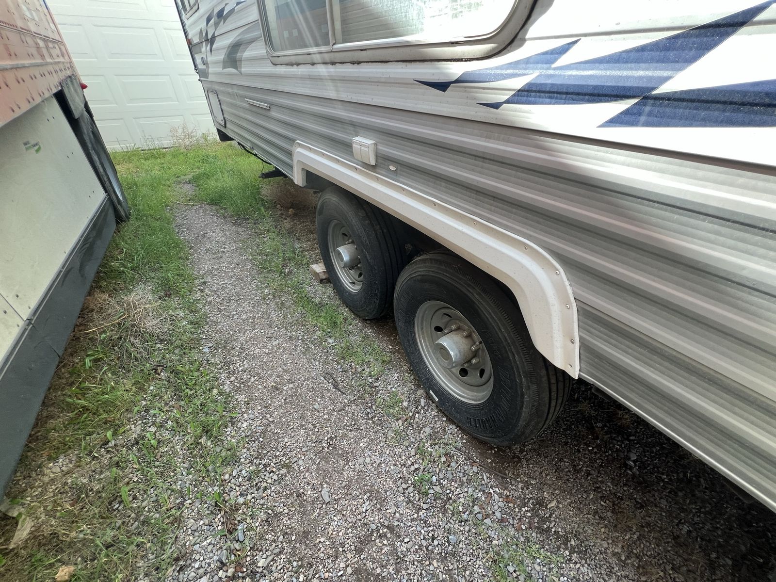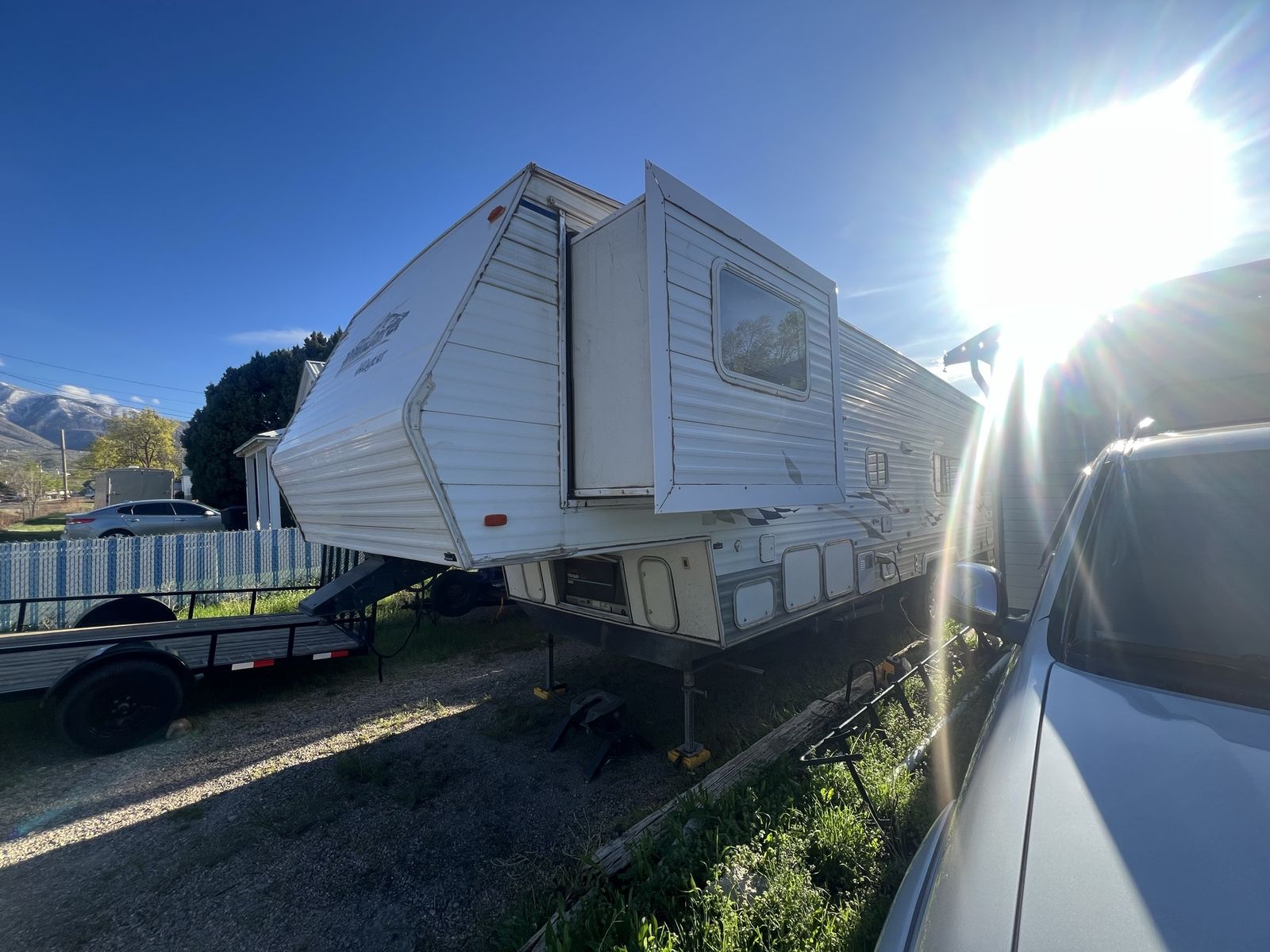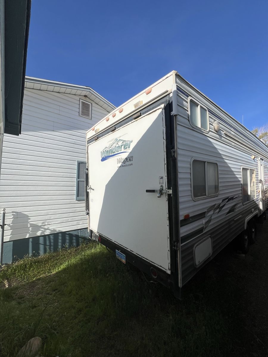 2005 wanderer wagon fifth wheel toy hauler 36’ with one slide I’ve owned this for a year and it been great for my needs upgraded to a newer one so no longer need and selling this one it fits my 2020 xp4 turbo S on 34 and four wheeler in the front no problem! Has a 90 to 100 gallon freshwater tank a 40 gallon gray water tank and 40 gallon black water tank it has the two queen size power bunk bed in the rear and a queen in the front on a slide and two fold down couches/beds. It has a onon marquis gold 5500 generator with 523 hours on it and it runs great . A 30 gallon on board fuel station three burner stove microwave tons of cabinet space ceiling fan and powered rain sensor vent fan size shower good storage underneath out door shower two new rear tires and new spare good. It blew a tire at the end of the season last year and and put a two” hole through the floor and tour some of the aluminum siding on the rear and the fuse for the electric jacks in the front fell out so I’ve just be cranking it by hand. It has wear and tear being 21 years old but overall in pretty good shape let me know if you have any questions or would like more pictures I’ll try and answer them the best I can or would like to come and see it thanks for looking $11,000 OBO located in Salem Utah. title in hand