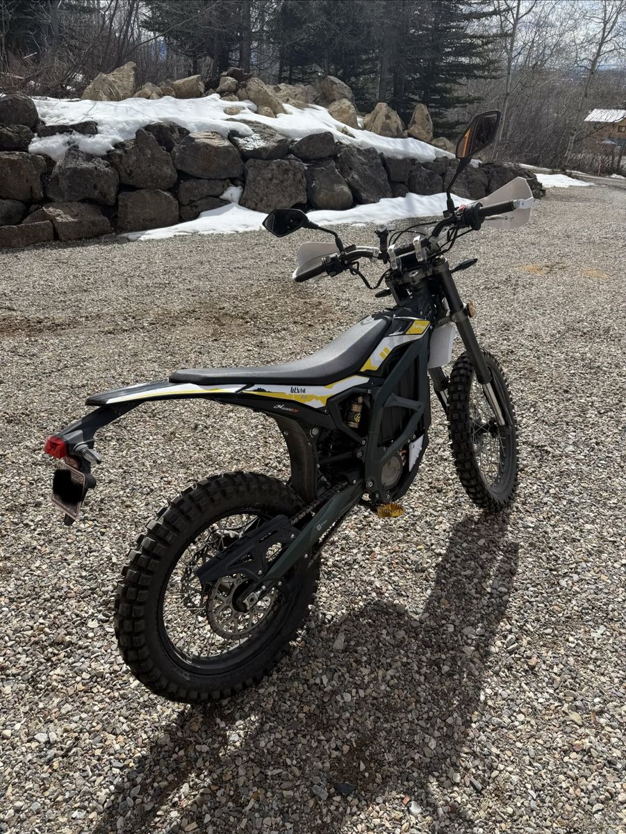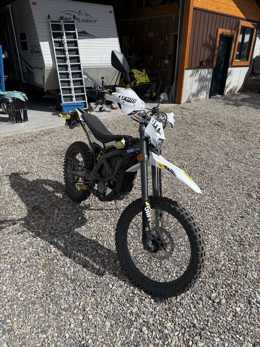 No trades! Plated, street legal Surron Ultra Bee w/~280 miles Upgrades include- Rox Risers (I have the original mount), Odi handlebars, Tusk handguards, KKE footpegs, KKE 550lb rear spring (I have the original spring if needed), KKE 21" front wheel, IRC TR8 street legal dual sport tires (I have the original 19" front wheel and tire as well) Title in hand; Has VIN