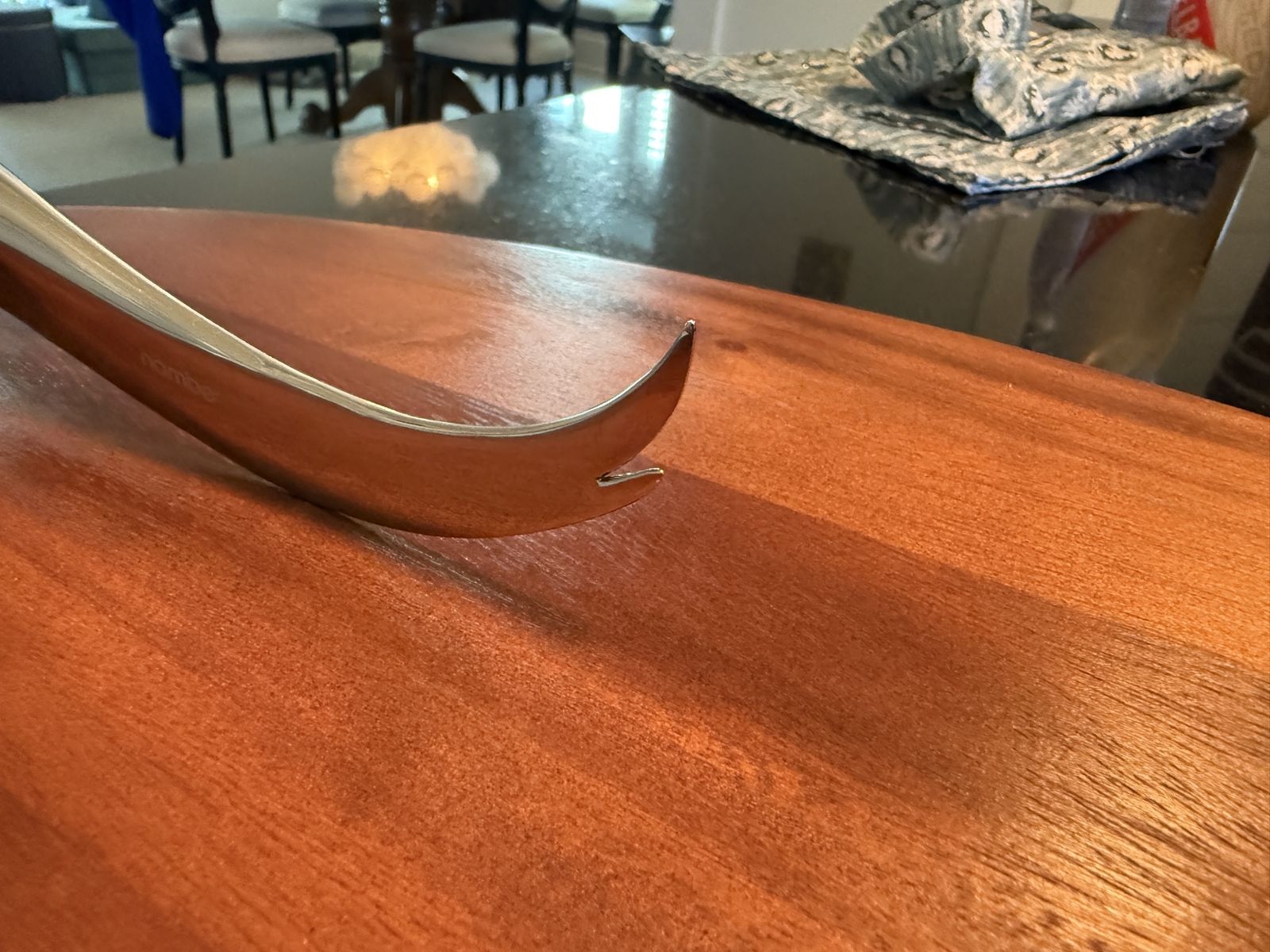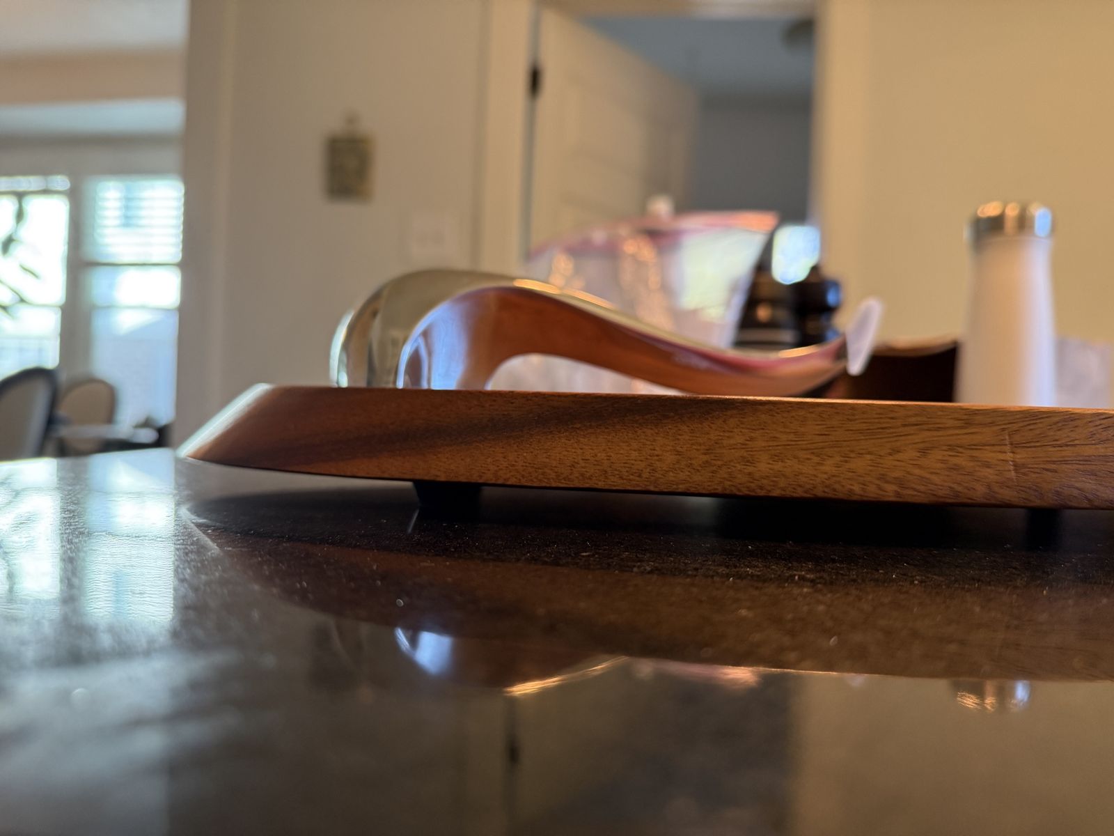 VenmoBeautiful Nambé serving board in excellent condition. Features their signature warm hardwood surface with the iconic sculpted alloy handle — a classic Nambé design that retails for $100+. Details:\