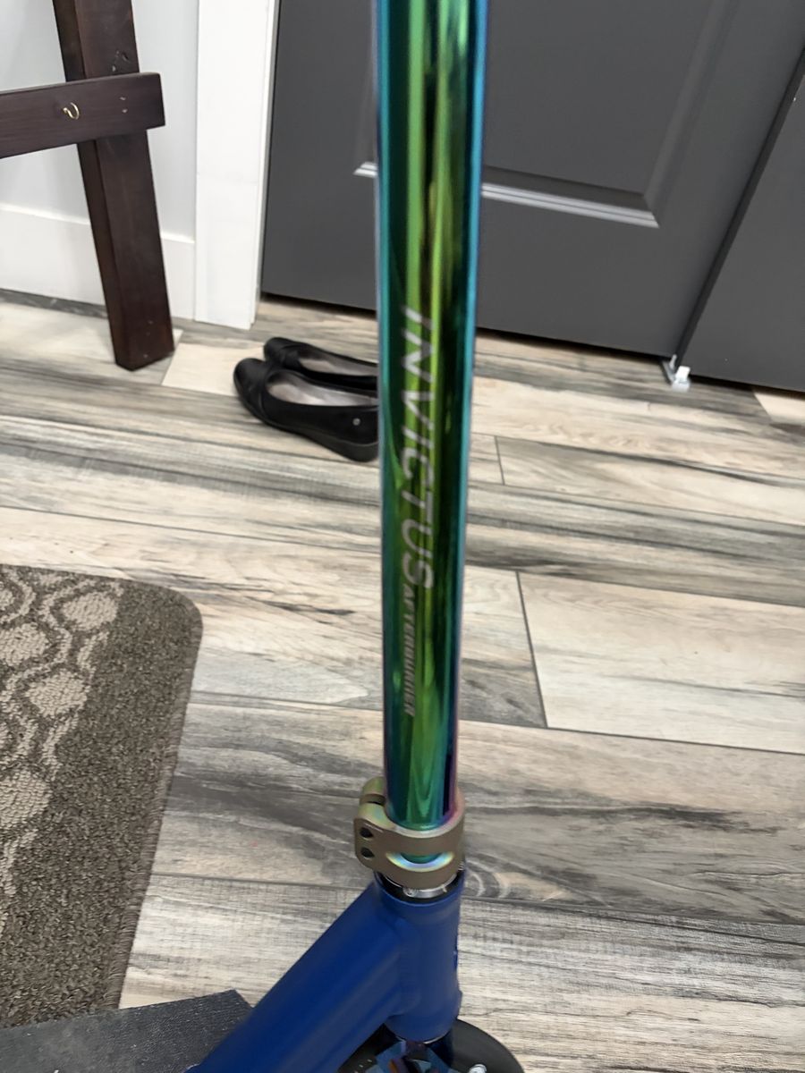 VenmoBlue ray root industries fork Blue Essence V3 110mm Black the vault velocity 2 After burner rocket fuel root industries bars Black Phoenix grips and bar ends Blue phoenix deck Phoenix grip tape Matte oil slick envy 2 bolt clamp It is HIC compression