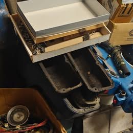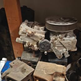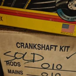 Intakes + 2 afv carberators. 6 heads. 2 sets of connecting rods. 2 cranks which have been ground and polished. Pans and front covers for timing chains. As far as I can tell both have been bored 20 thousandths.
