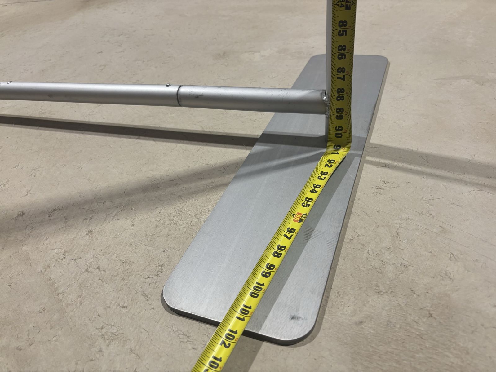 Description- Freestanding heavy duty, aluminum pipe and drape/photo backdrop/tradeshow display frame with sturdy metal stands. Collapses quickly into small smaller pieces for easy storage and transport. Approximate dimensions are 7.5 feet tall by 9 feet wide. *ALTHOUGH THIS ITEM IS BRAND NEW WE RECEIVED IT OUT OF ITS PACKAGING. See photos for more product information and specifications.