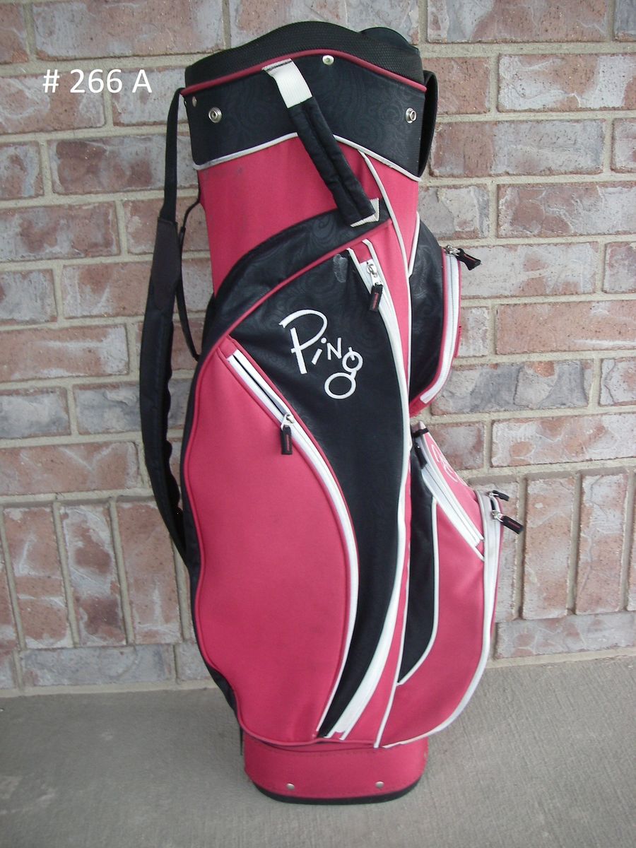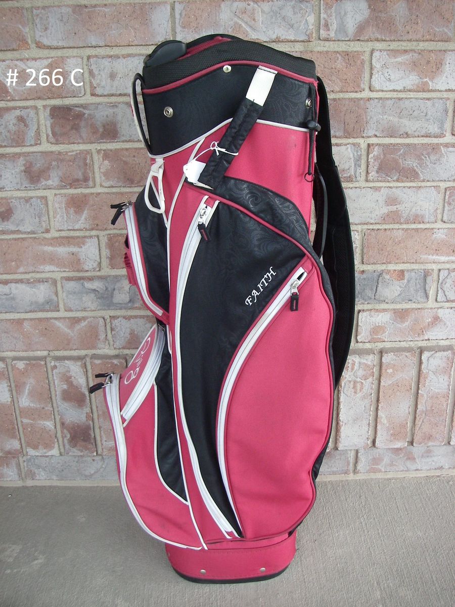 #266 See 3 Photos, PING FAITH. Womens. Cart Bag, RED / BLACK, 3 Handles & 1 Shoulder Strap, 14 Dividers, 7 Pockets, Very Good Condition, $59
