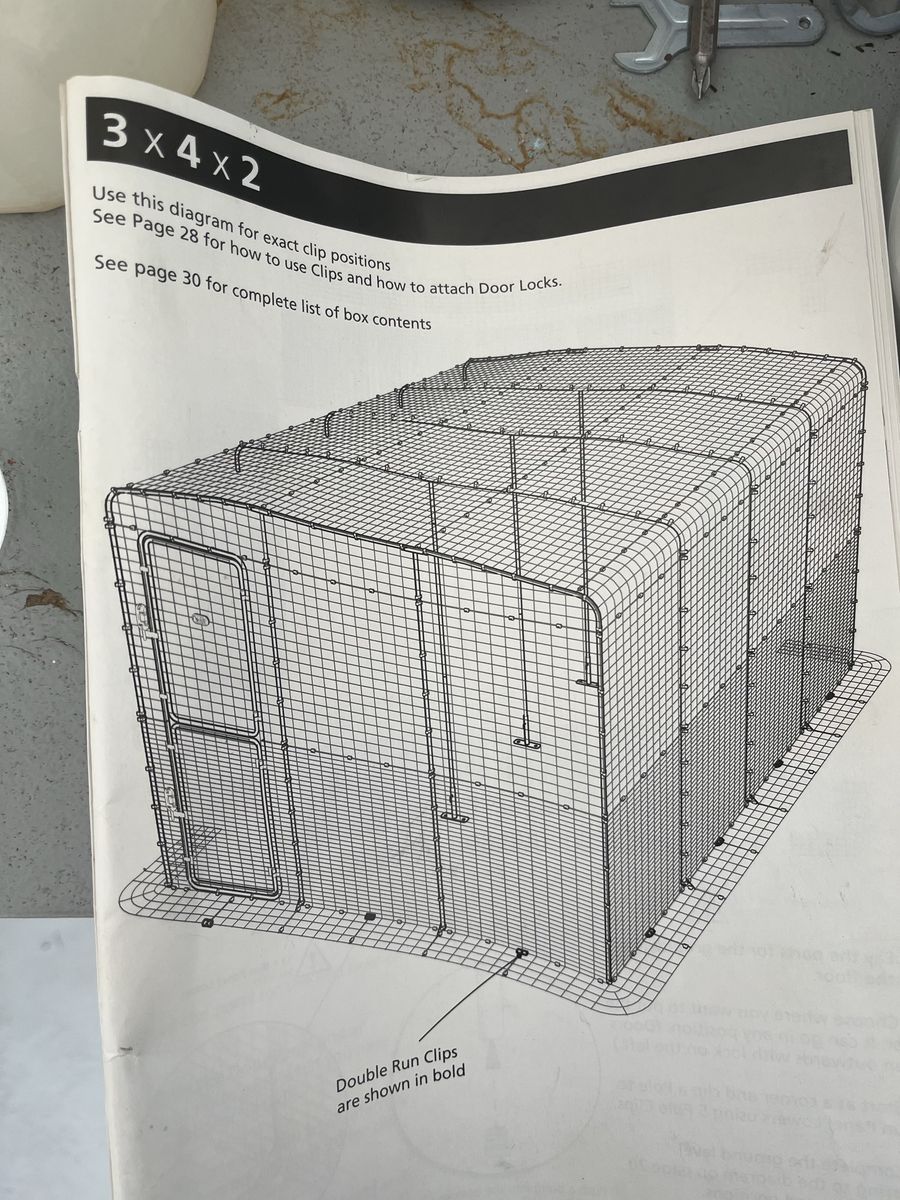 Coop was fully built at last house, photo only shows partially built at new place. Extra panels were stored in garage.