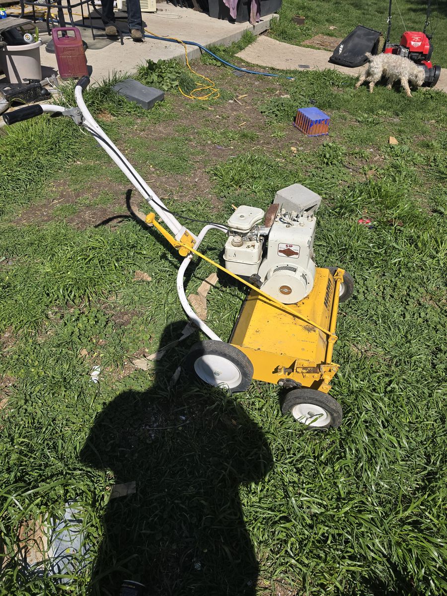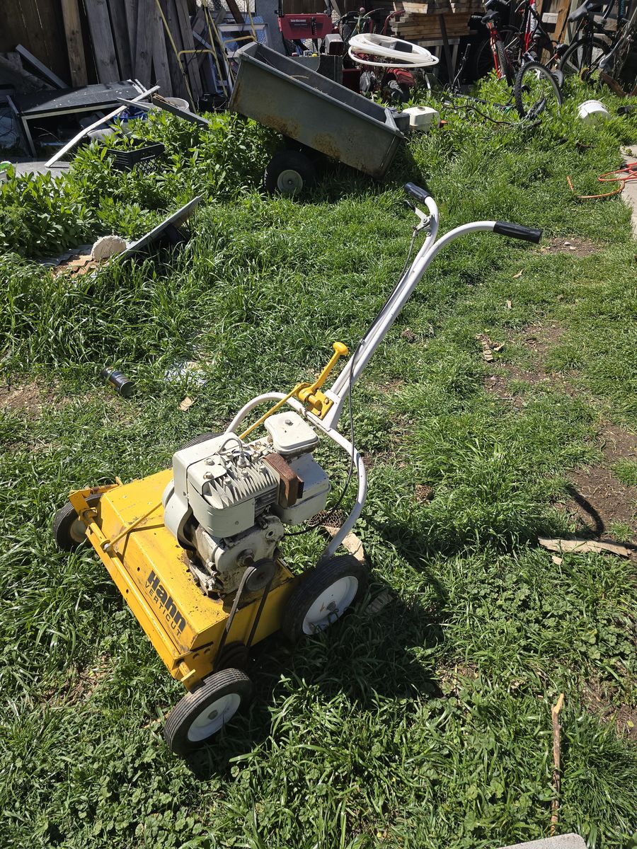 I have Hahn Verticut tool for sale. It is in over all good condition. It sat in storage for several years. Cleaned it up, put a new carb on it. Runs fine. Might need a new throttle spring. Seems to be a bit stretched , but it does run and work. Might trade for running motor bikes, or a good riding mower. Located in Garland.