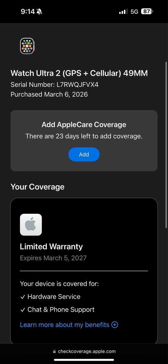 This monthly subscription provides coverage for unlimited accidental damage incidents, with a $79 service fee for each repair, and 24/7 priority access to technical support. Covers the Apple Watch Ultra against damage from drops, spills, and accidental breaks, as well as battery coverage if it retains less than 80% of its original capacity.