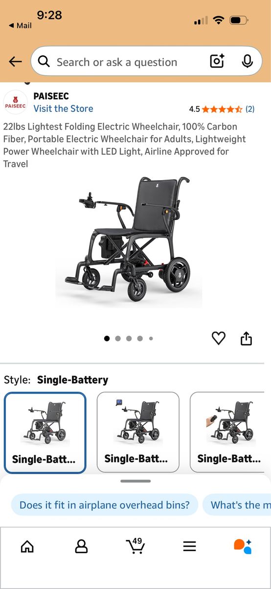 Venmo22 pound lightest folding electric wheelchair. Comes with rear remote control, and Bluetooth remote control. Retails for $1800.