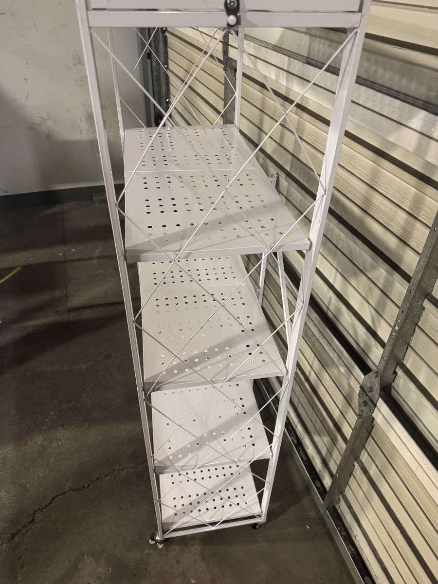 Stylish Convenient Storage This modern foldable storage shelf is the perfect solution any time you need temporary storage while still look stylish to be a permanent fixture to your kitchen or living room. Its sleek design fits perfectly with the decor of any room in your house and will elevate your space that you'll be proud to show off to your guests. Space Saving Design Within 5 seconds, you are able to fold and store away this foldable shelf. Easily collapsing down to a width of 5 inches, you can conveniently store this shelf in your pantry, garage, or even in between shelves to keep it out of sight. Extra Durable & LightThis folding shelf is made of heavy duty materials able to store up to 90 lbs on each level. It is scratch-resistant, waterproof, and rustproof, ensuring its durability to last through many years of long term use. This cart is equipped not only with silent wheels that enable quiet shelf movement, but also features larger wheels that make moving heavier items on the shelf much easier. Wheels are lockable, removable, and offer 360 degrees of movement.